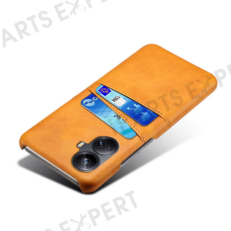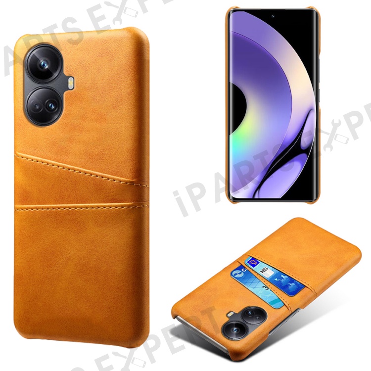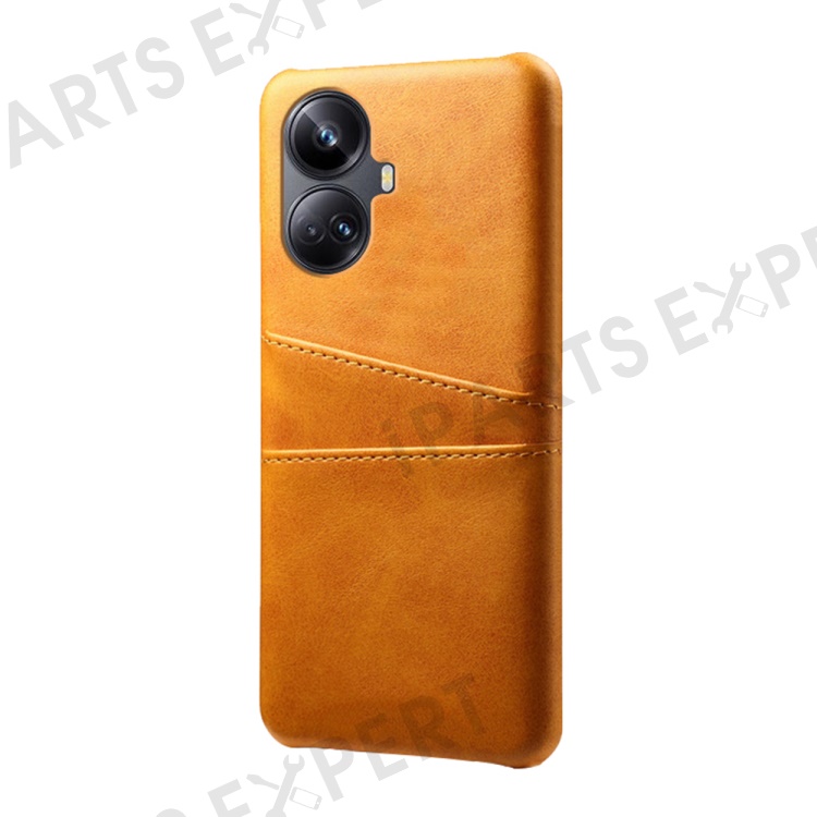 For Realme 10 Pro+ 5G PU Leather Coated Hard PC Anti-Scratch Phone Case Dual Card Slots Non-Slip Protective Back Cover - Orange
