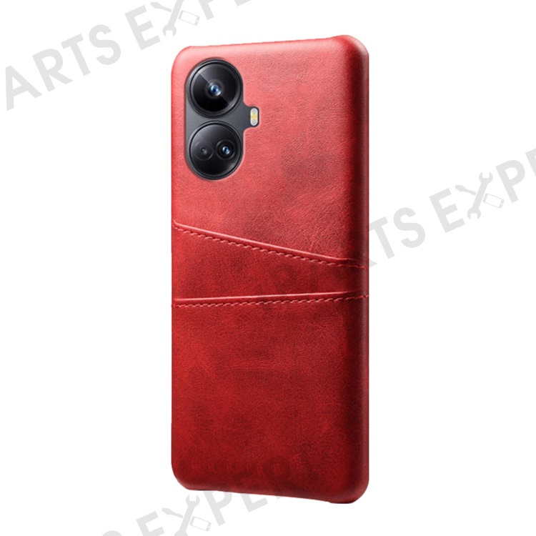 For Realme 10 Pro+ 5G PU Leather Coated Hard PC Anti-Scratch Phone Case Dual Card Slots Non-Slip Protective Back Cover - Red