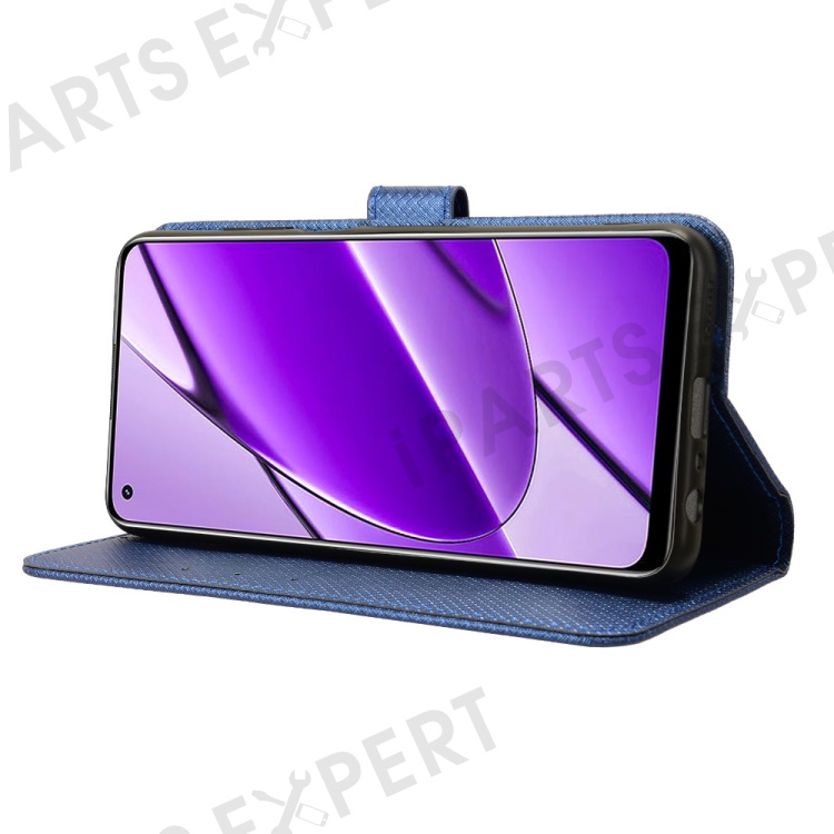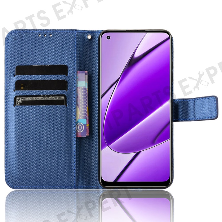 For Realme 11 4G (159.9x73.3x7.95mm) Phone Case PU Leather Wallet Flip Folio Cover - Blue
