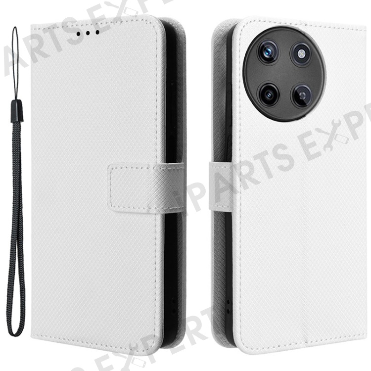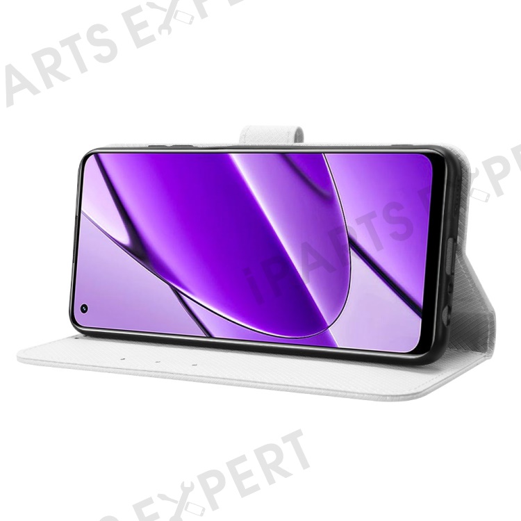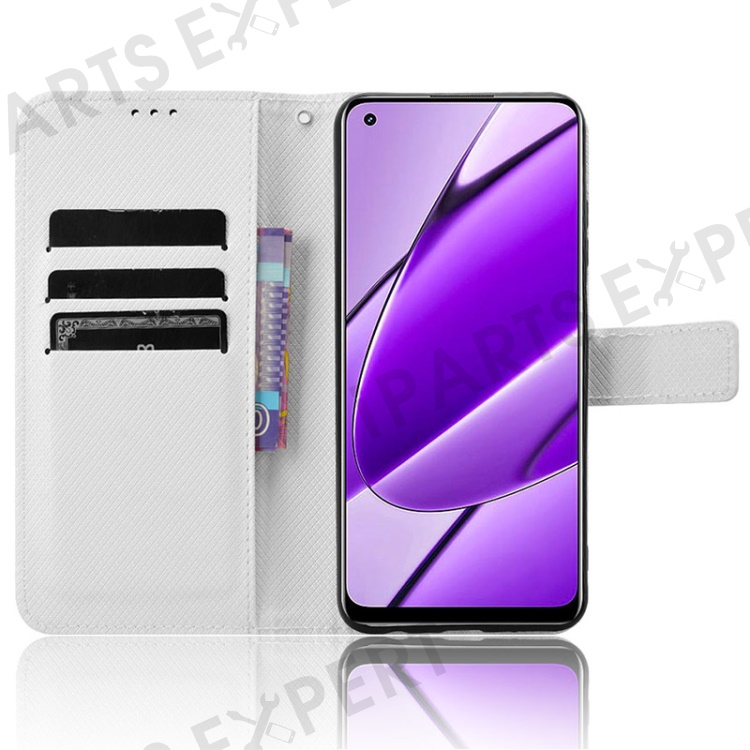 For Realme 11 4G (159.9x73.3x7.95mm) Phone Case PU Leather Wallet Flip Folio Cover - White
