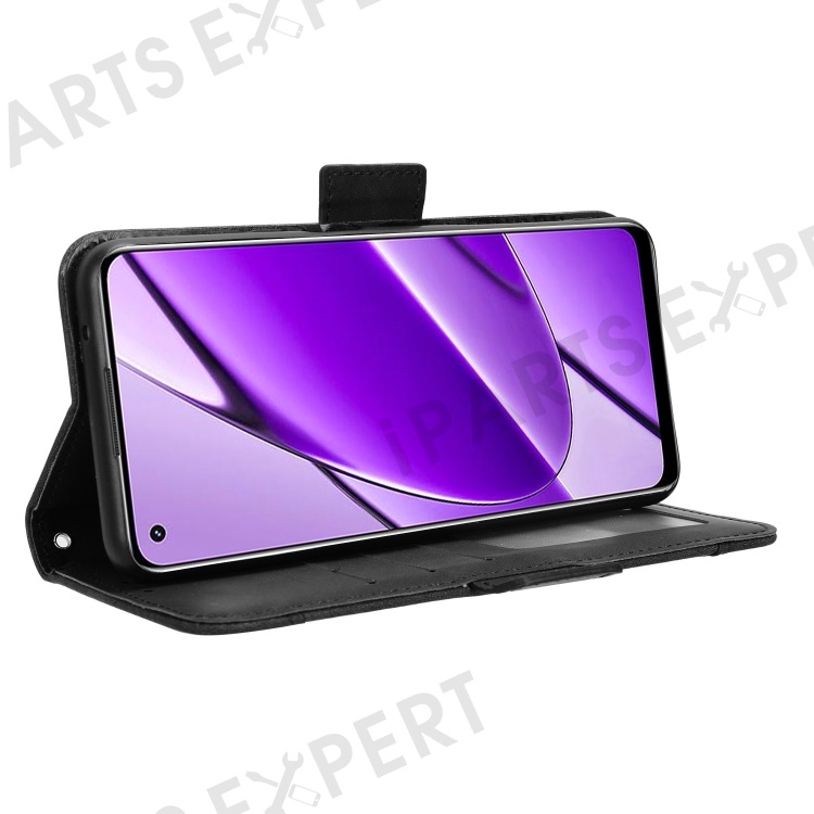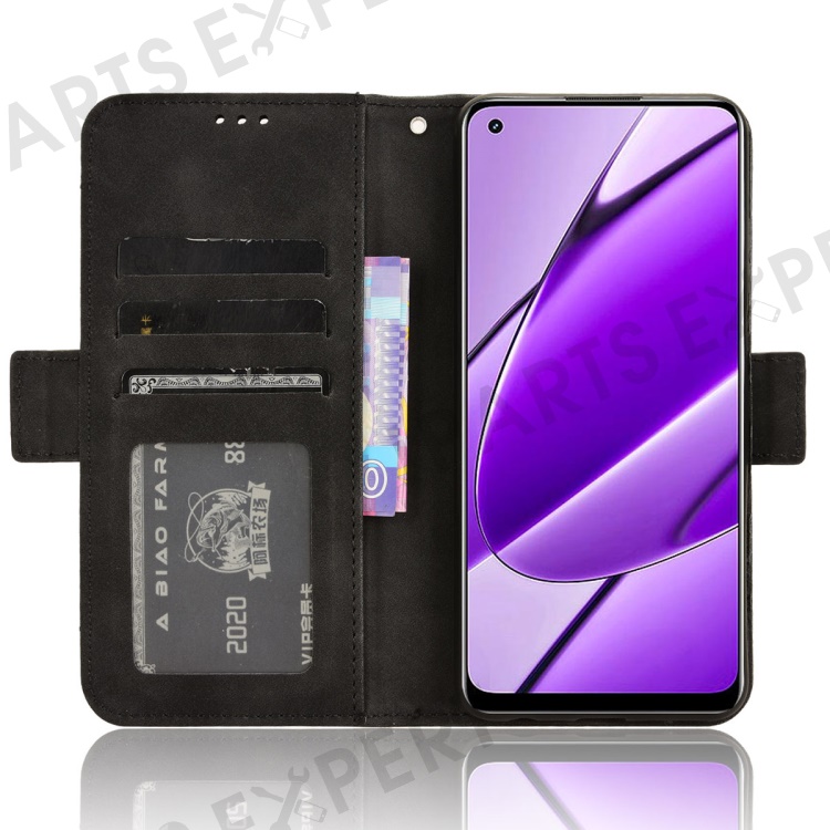 For Realme 11 4G (159.9x73.3x7.95mm) Wallet Case PU Leather Multiple Card Slots Phone Cover - Black