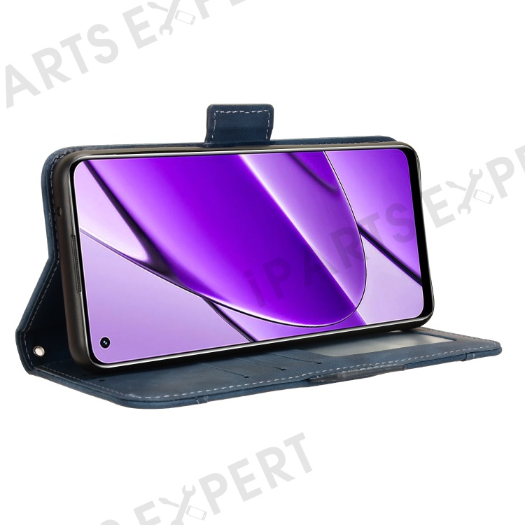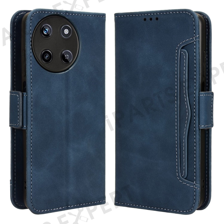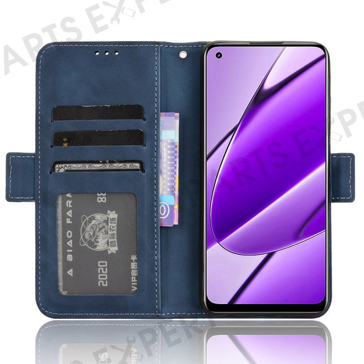 For Realme 11 4G (159.9x73.3x7.95mm) Wallet Case PU Leather Multiple Card Slots Phone Cover - Blue