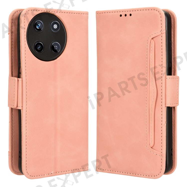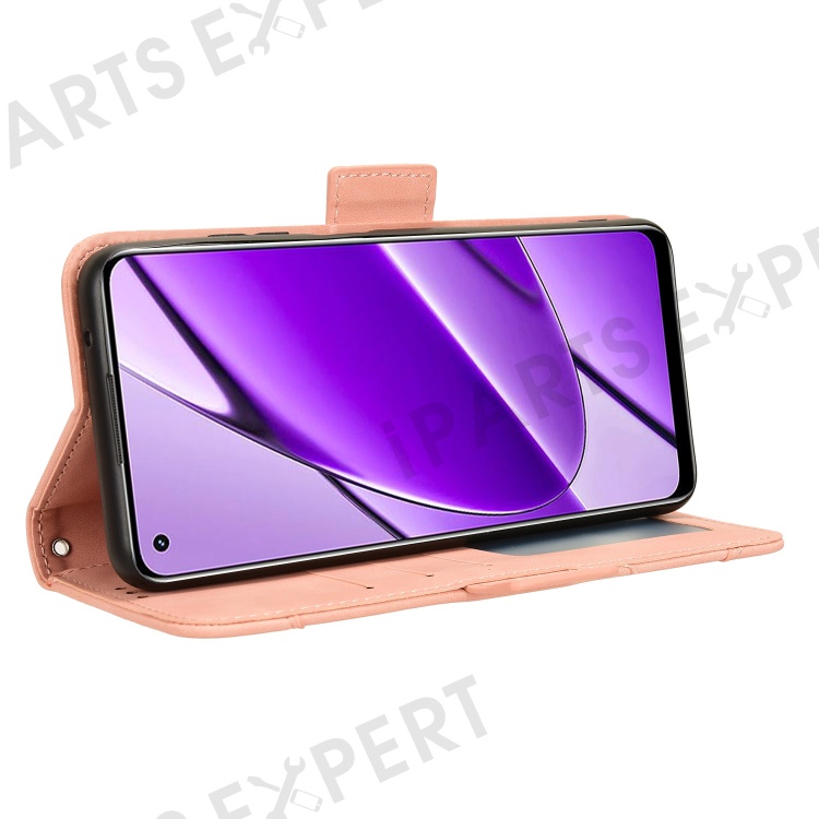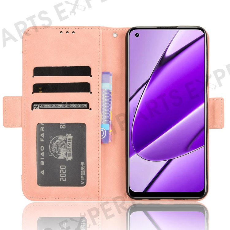 For Realme 11 4G (159.9x73.3x7.95mm) Wallet Case PU Leather Multiple Card Slots Phone Cover - Pink