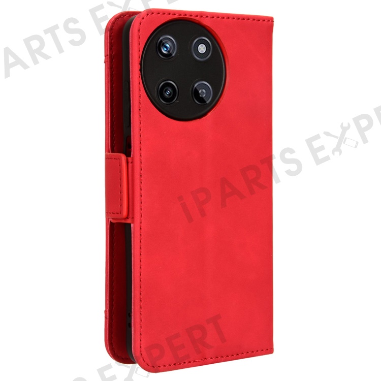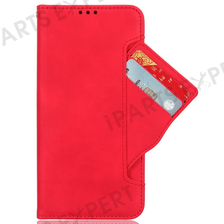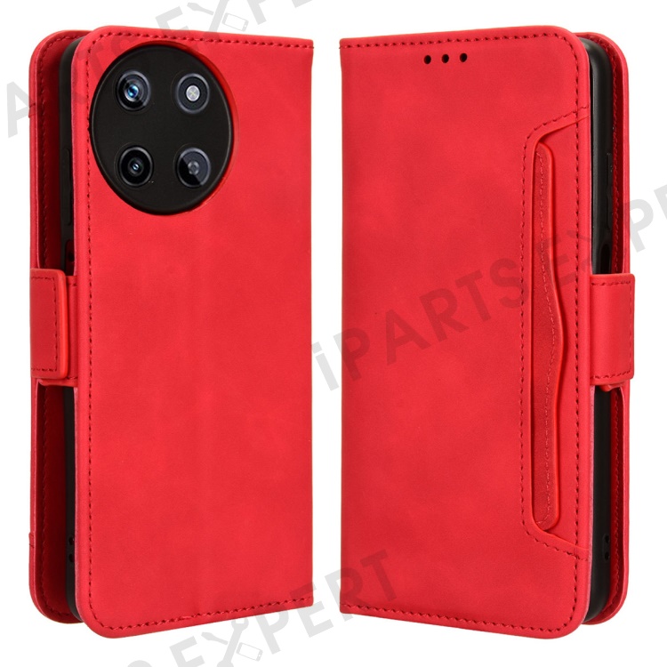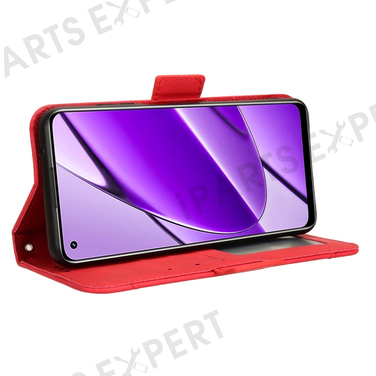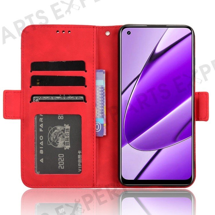 For Realme 11 4G (159.9x73.3x7.95mm) Wallet Case PU Leather Multiple Card Slots Phone Cover - Red