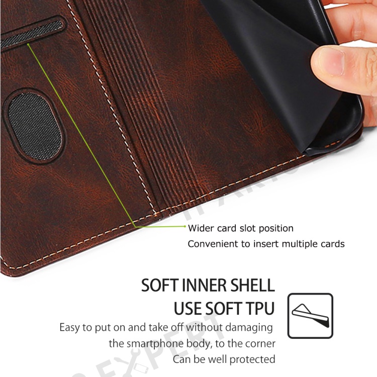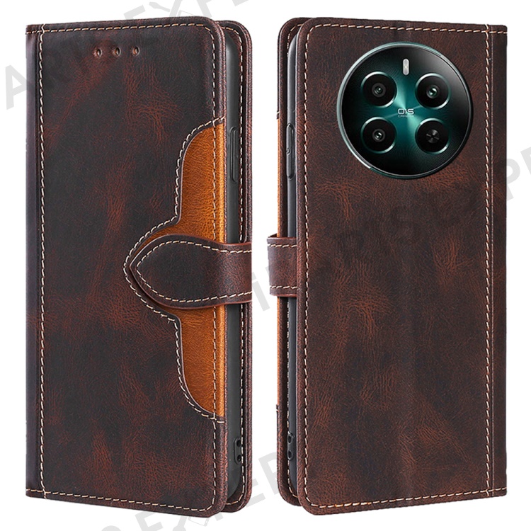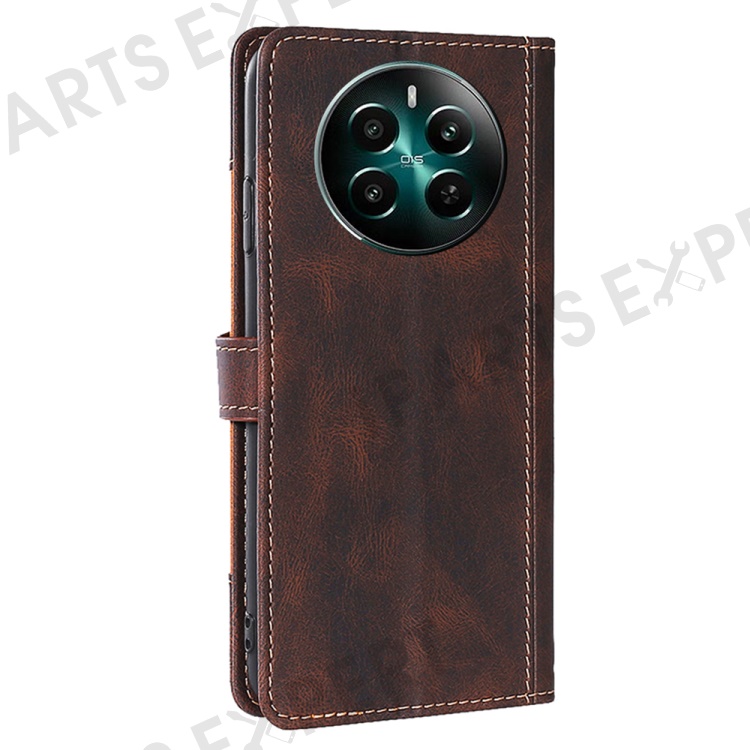 For Realme 12 4G / 12+ 5G Case Skin-Touch Leather Phone Cover with Wallet Stand - Brown