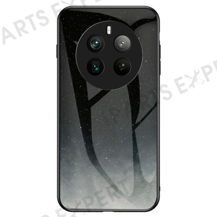 For Realme 12 Pro 5G / 12 Pro+ 5G Case Slim Tempered Glass Phone Cover Starry Sky Pattern Design - Starry Crescent Moon