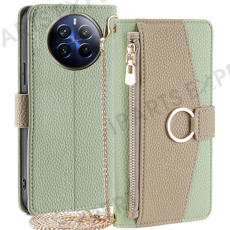 For Realme 12 Pro 5G / 12 Pro+ 5G Case with Lanyard Wallet Zipper Leather Phone Cover - Green