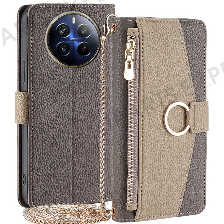 For Realme 12 Pro 5G / 12 Pro+ 5G Case with Lanyard Wallet Zipper Leather Phone Cover - Grey