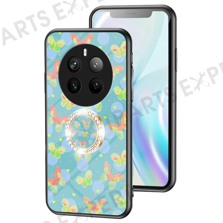 For Realme 12 Pro 5G / 12 Pro+ 5G Kickstand Case Butterfly Series Tempered Glass Phone Cover - Lush Butterfly