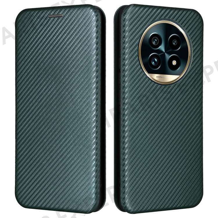 For Realme 13 Pro 5G (Global) / 13 Pro+ 5G (Global) Case Carbon Fiber Texture Drop-Proof PU Leather Phone Cover - Green