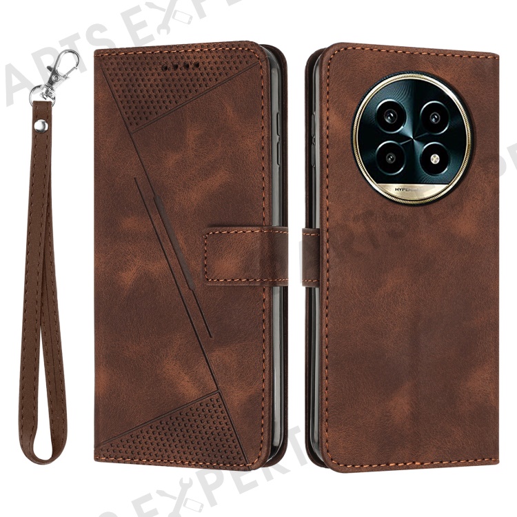 For Realme 13 Pro 5G (Global) / 13 Pro+ 5G (Global) Case Handbag Imprinted Triangle Leather Phone Cover - Brown