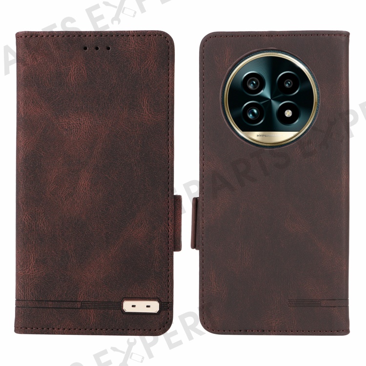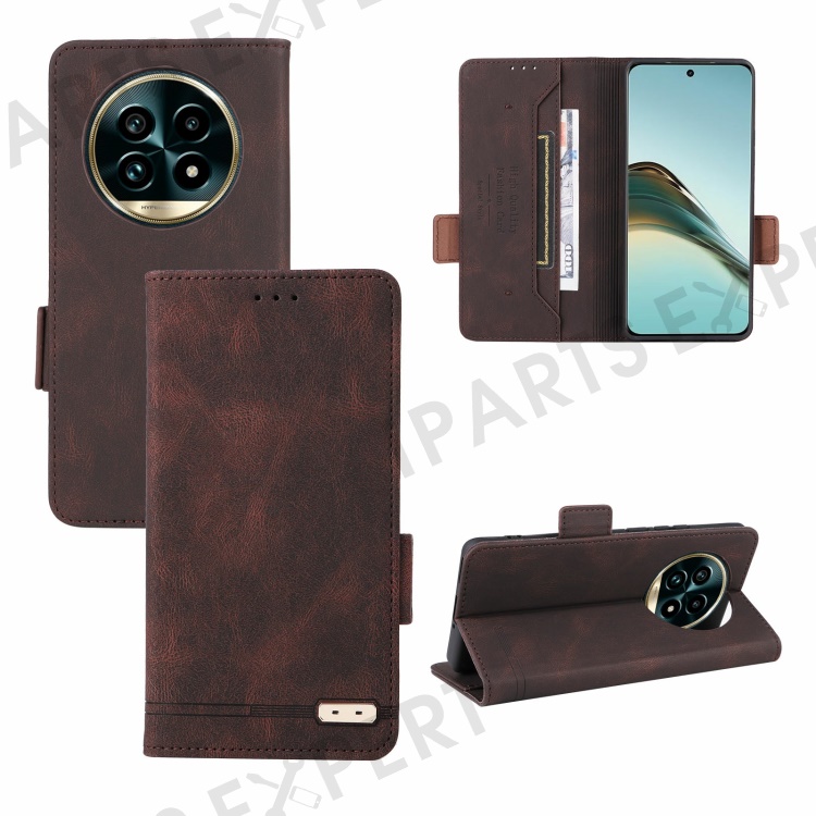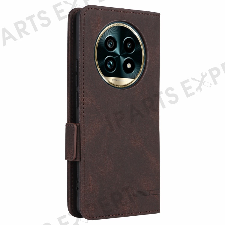 For Realme 13 Pro 5G (Global) / 13 Pro+ 5G (Global) Case Leather Wallet Flip Phone Cover with Hardware Decor - Coffee