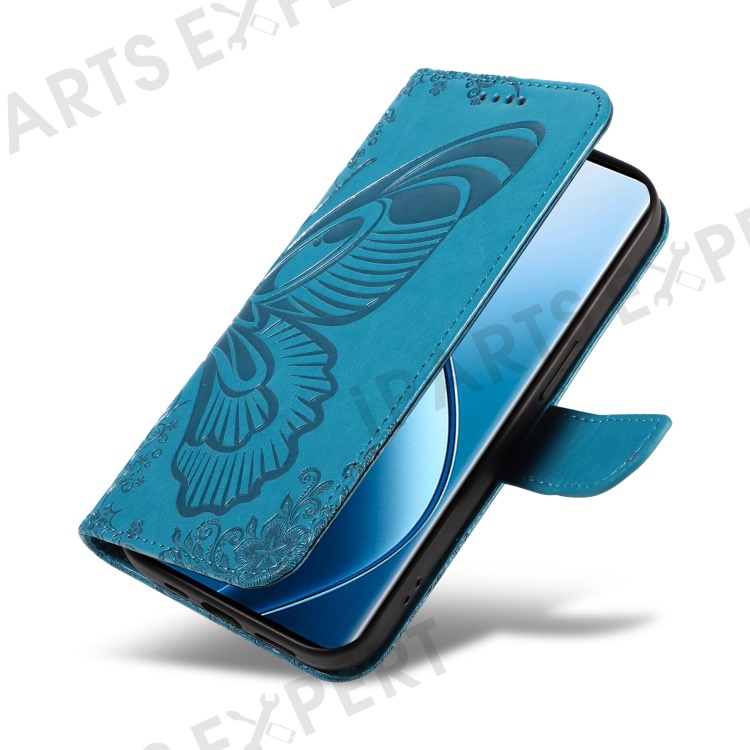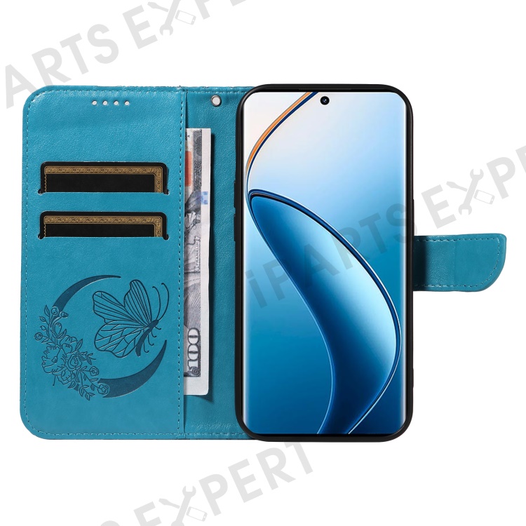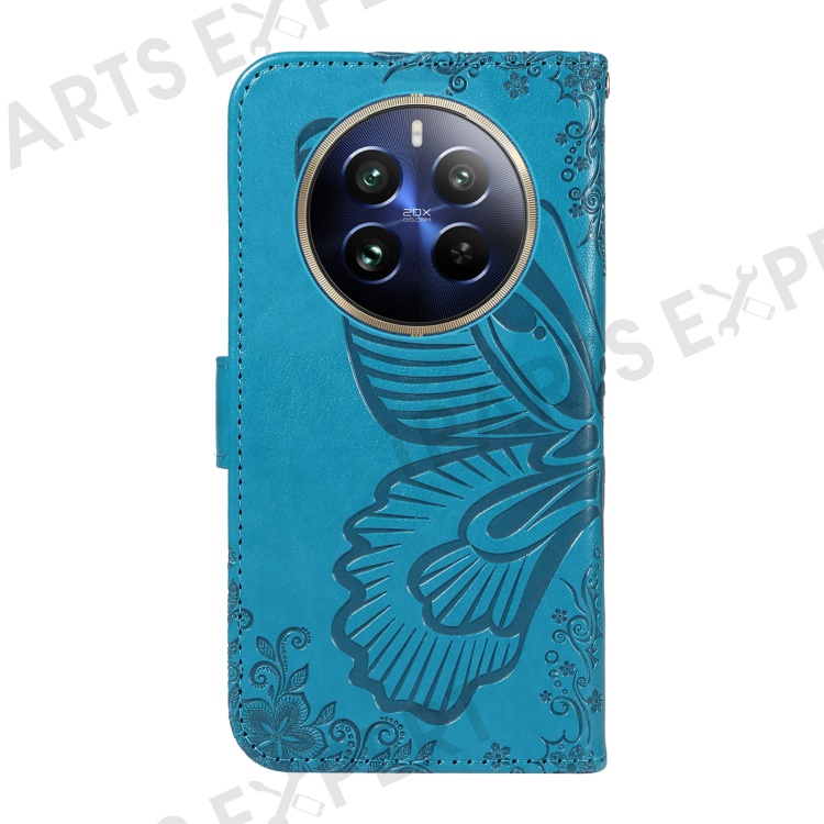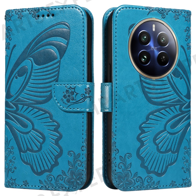 For Realme 13 Pro 5G (Global) / 13 Pro+ 5G (Global) / P1 Pro 5G / 12 Pro 5G / 12 Pro+ 5G Case Butterfly Pattern Leather Wallet Phone Cover - Blue