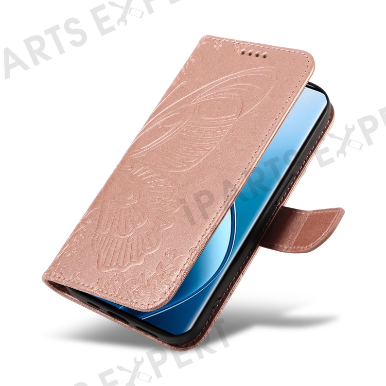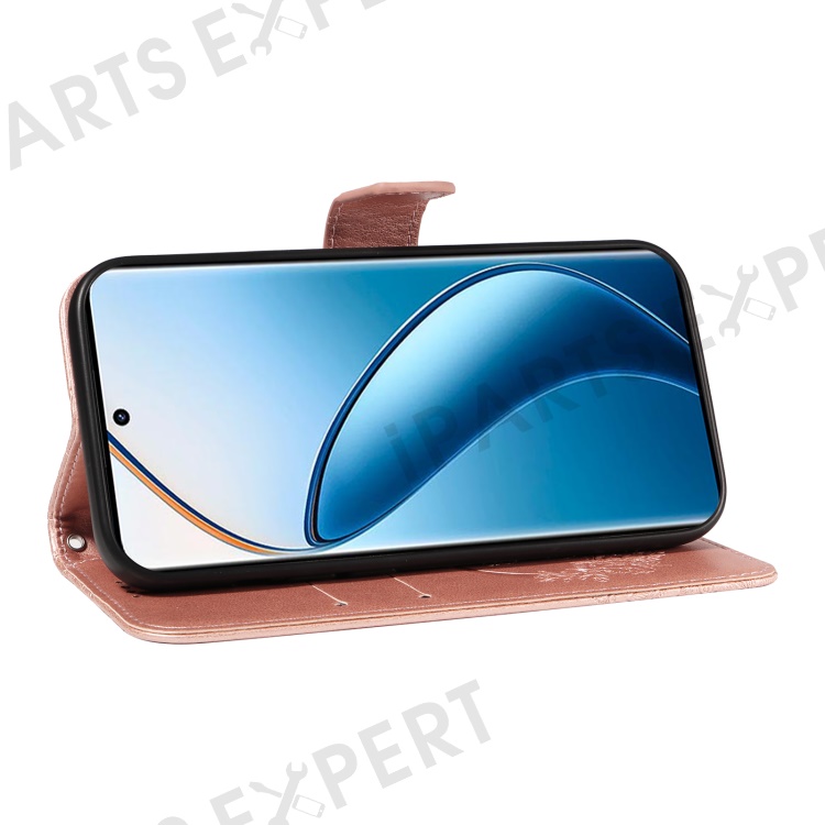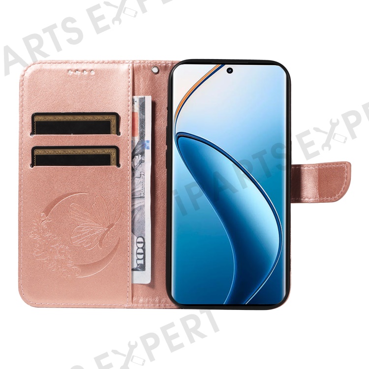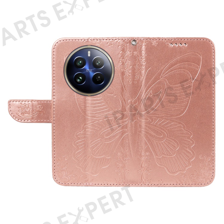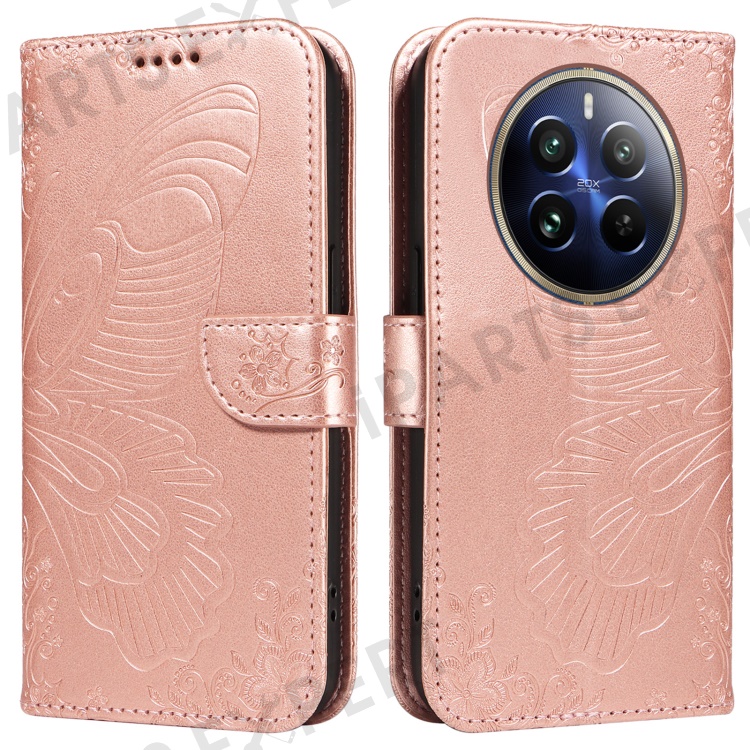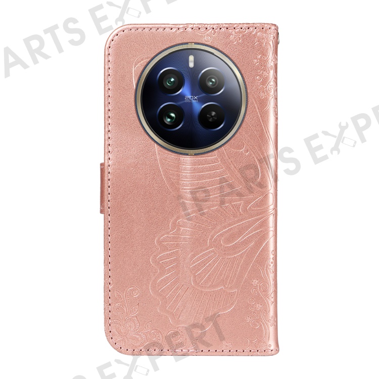For Realme 13 Pro 5G (Global) / 13 Pro+ 5G (Global) / P1 Pro 5G / 12 Pro 5G / 12 Pro+ 5G Case Butterfly Pattern Leather Wallet Phone Cover - Rose Gold