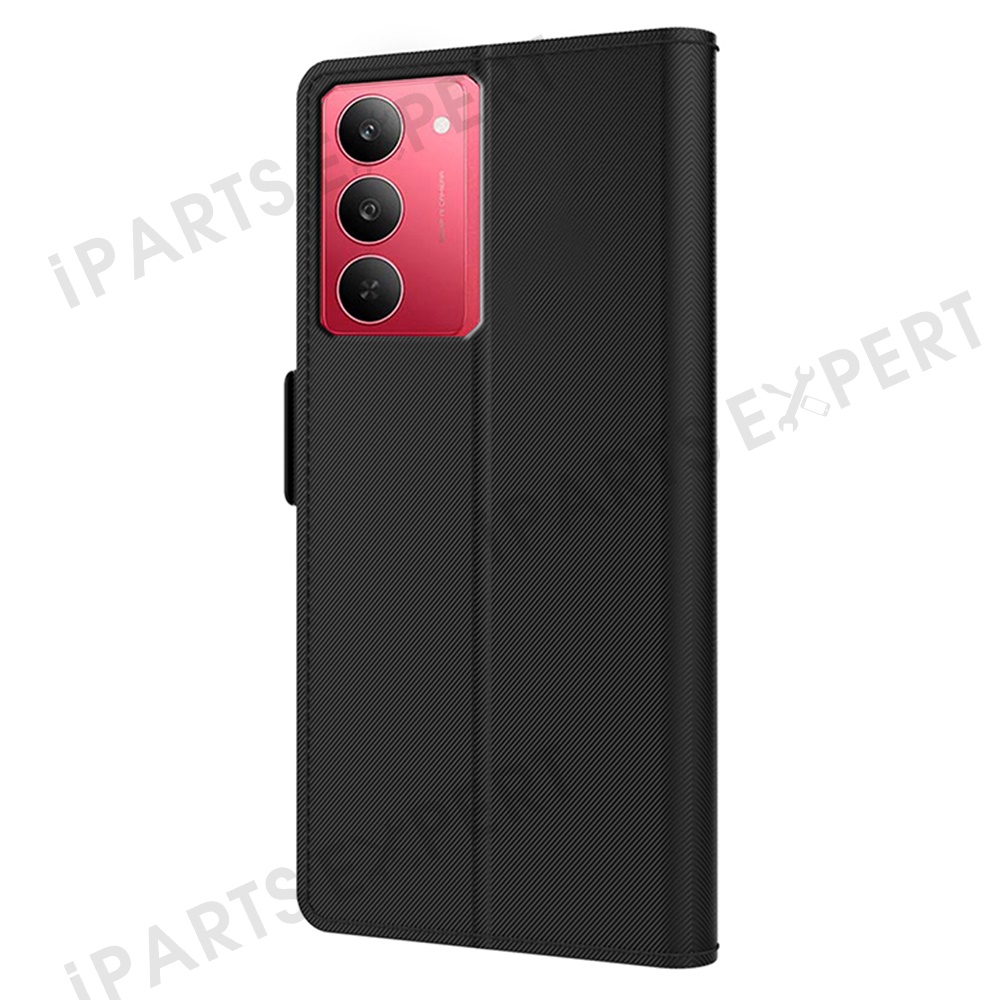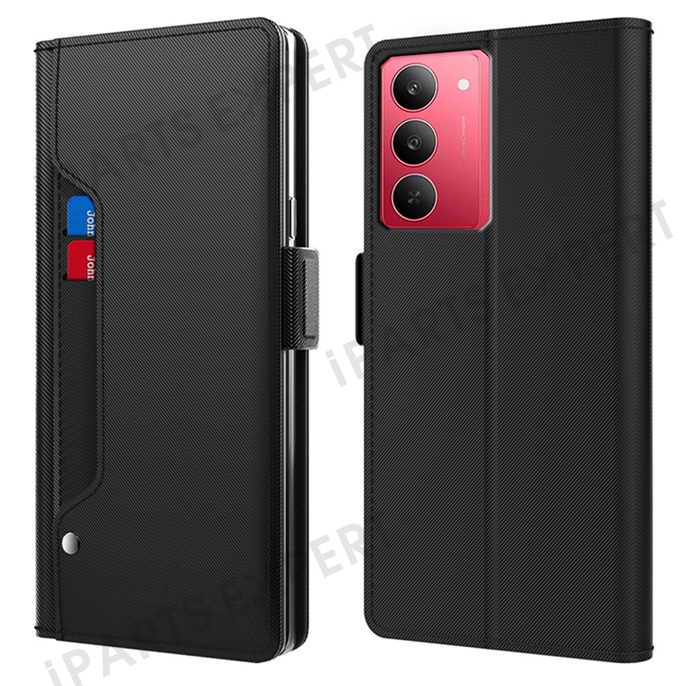 For Realme 14x 5G / V60 Pro 5G Case Stand PU Leather Phone Cover Card Holder Mirror - Black