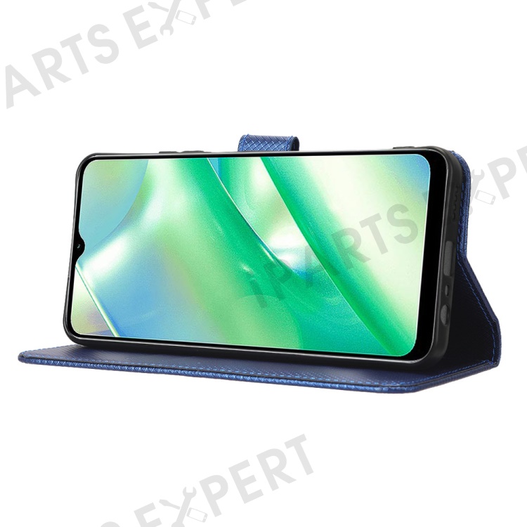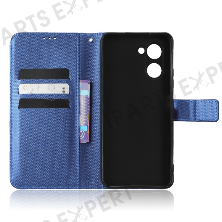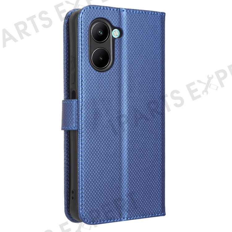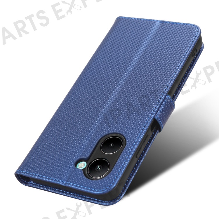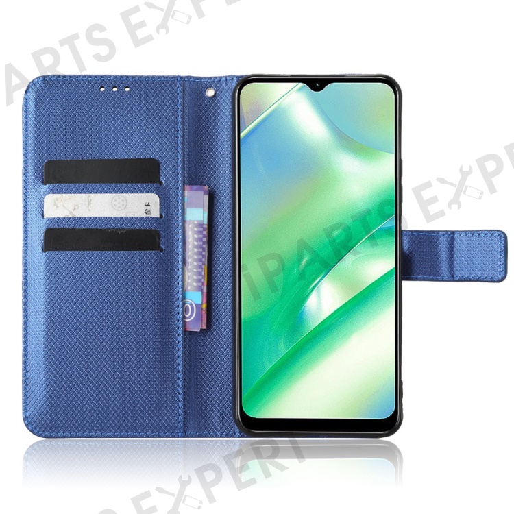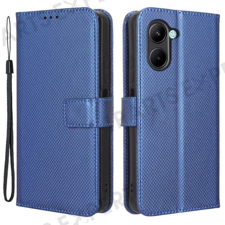 For Realme C33 4G Diamond Texture PU Leather Flip Phone Case Wallet Stand Design Folio Cover with Strap - Blue