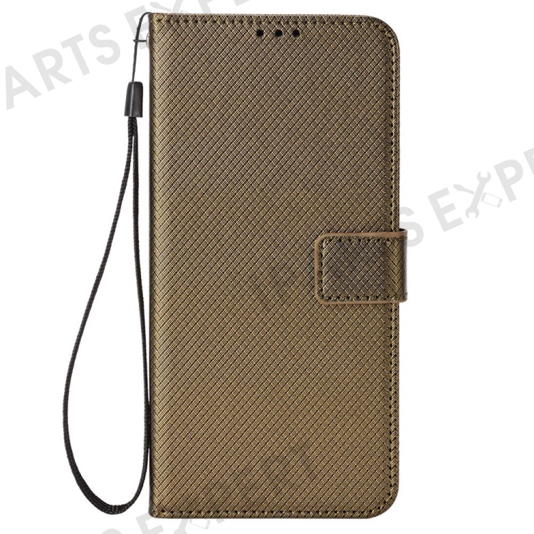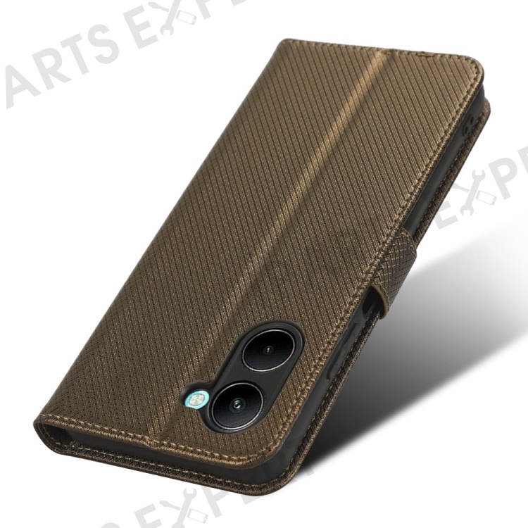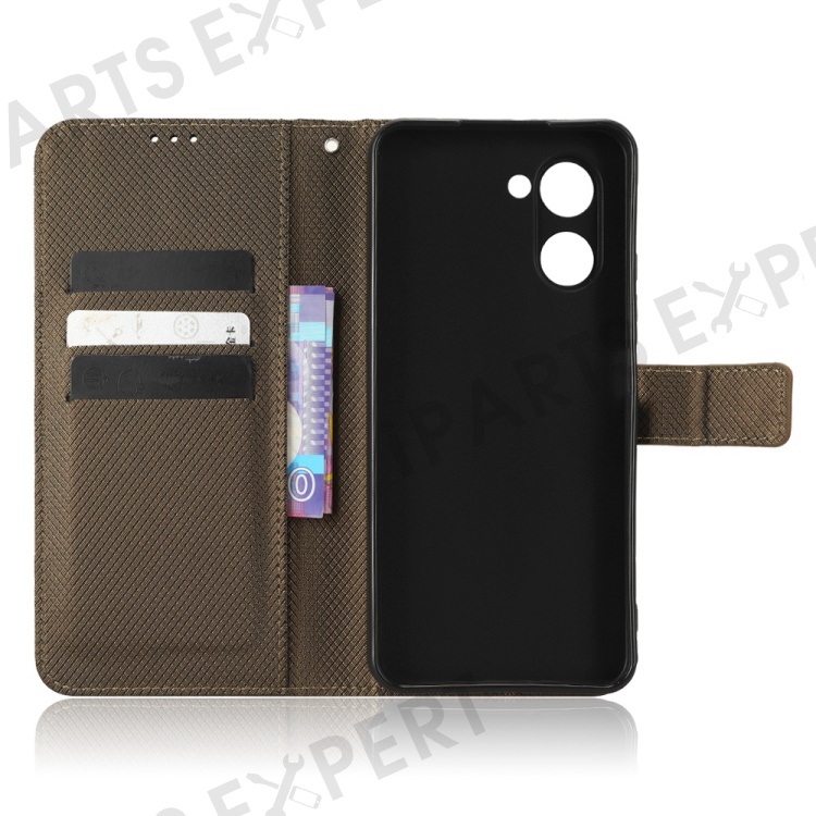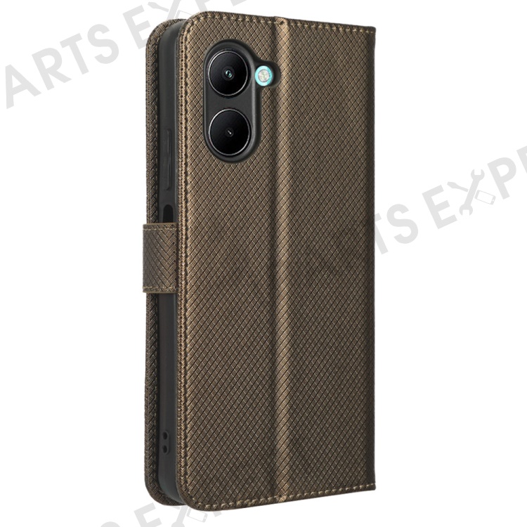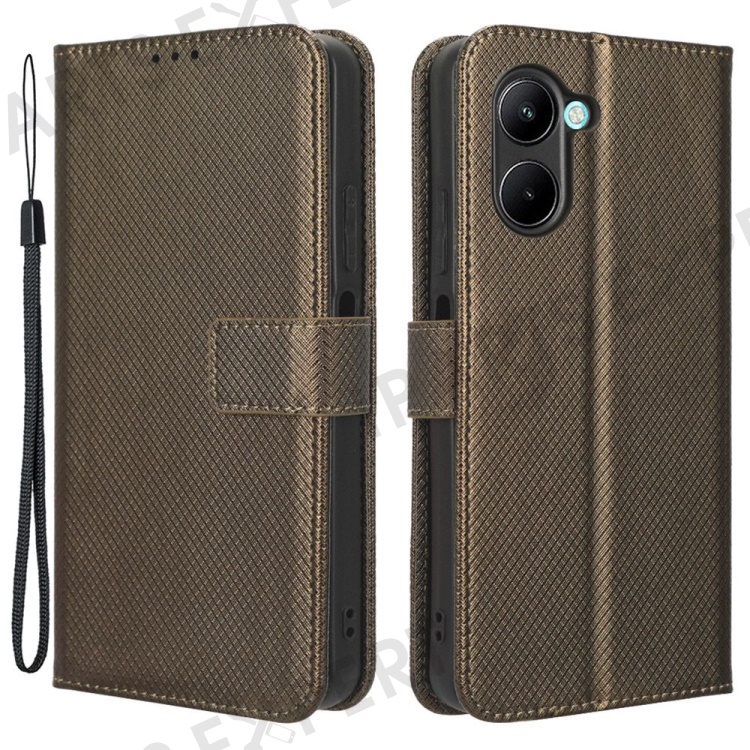 For Realme C33 4G Diamond Texture PU Leather Flip Phone Case Wallet Stand Design Folio Cover with Strap - Brown