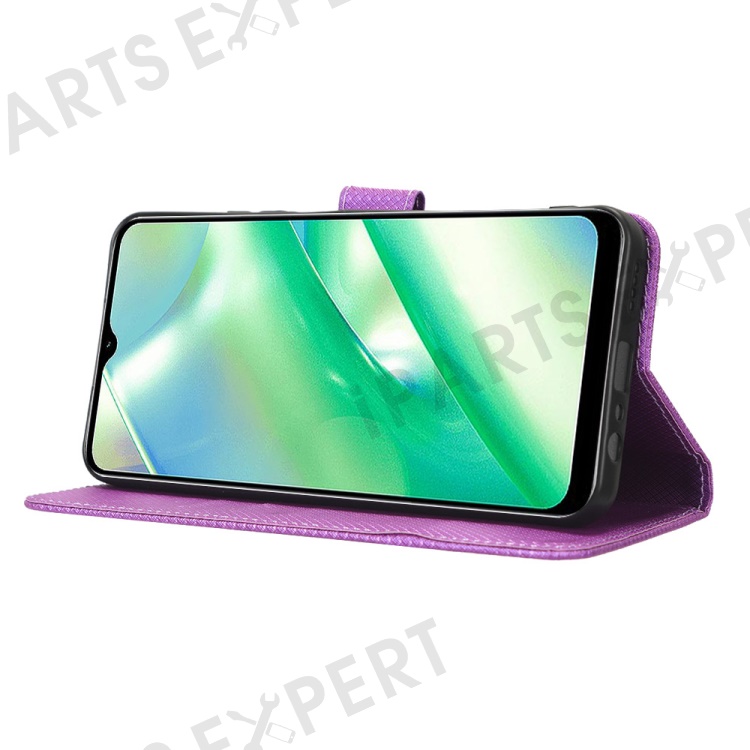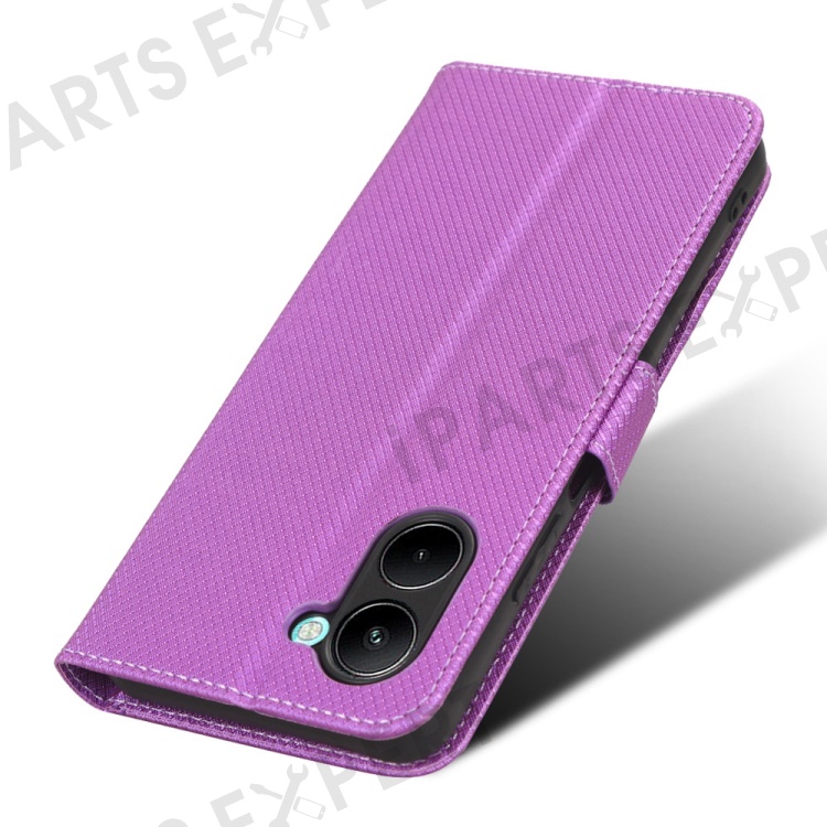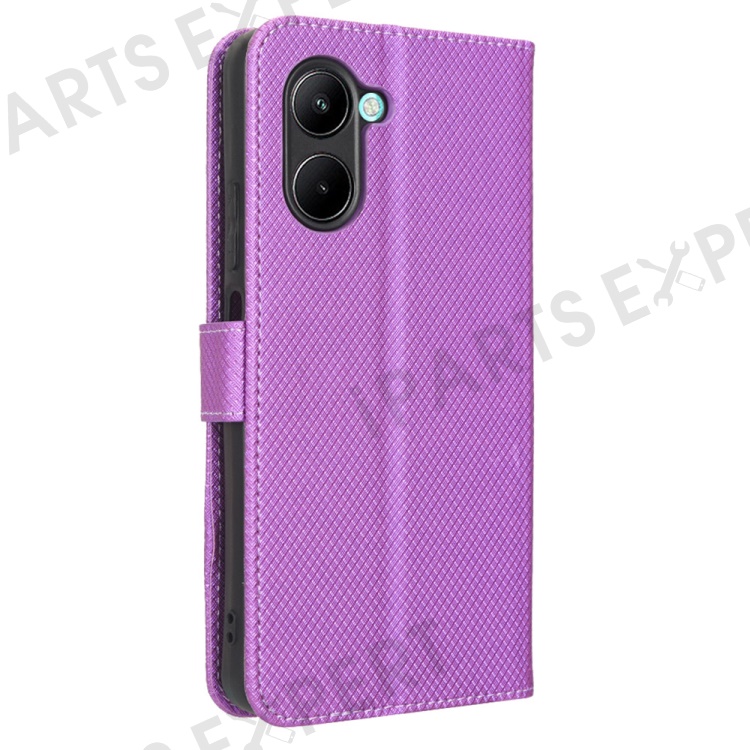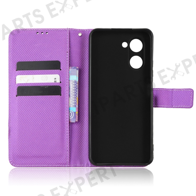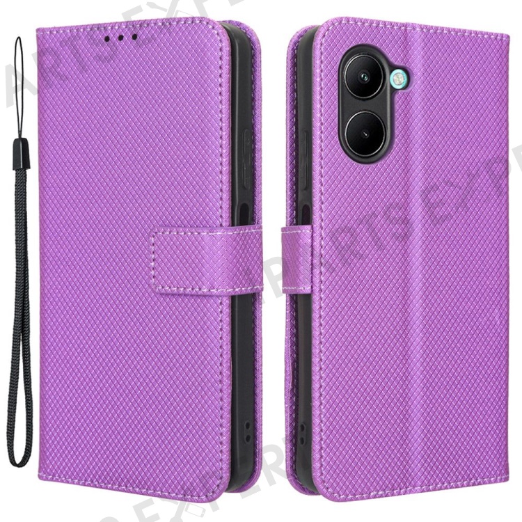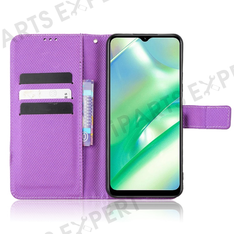 For Realme C33 4G Diamond Texture PU Leather Flip Phone Case Wallet Stand Design Folio Cover with Strap - Purple