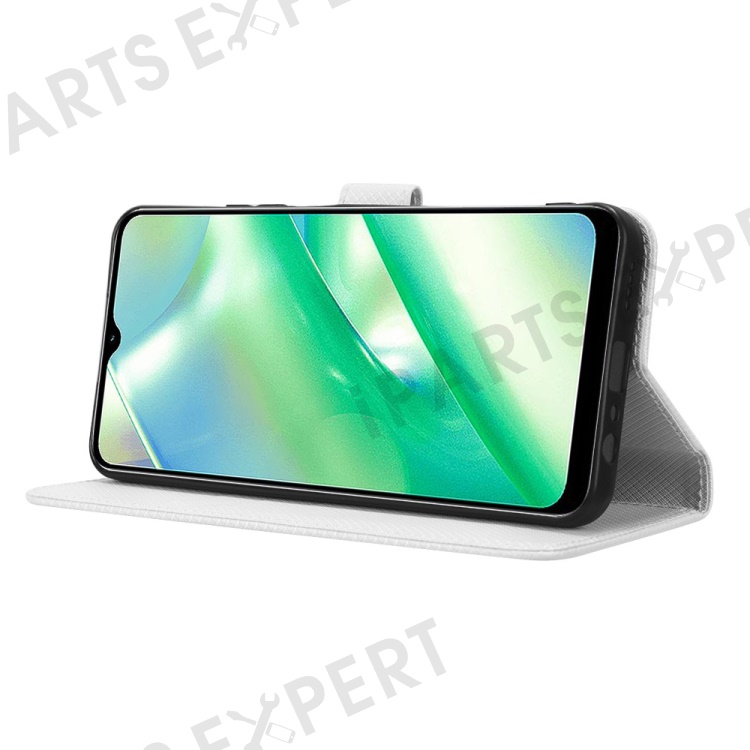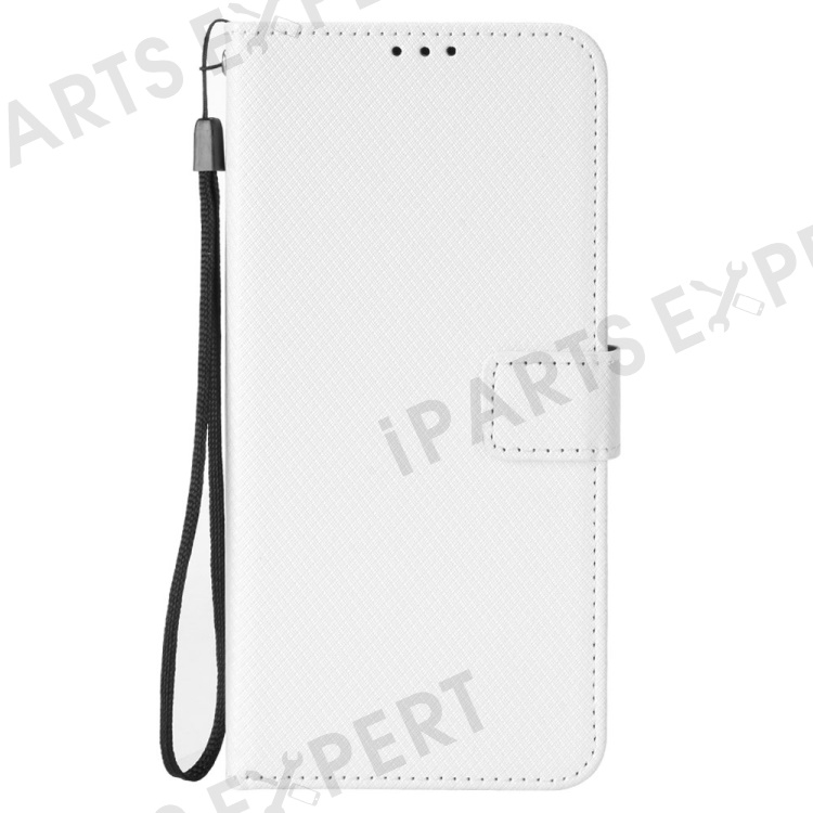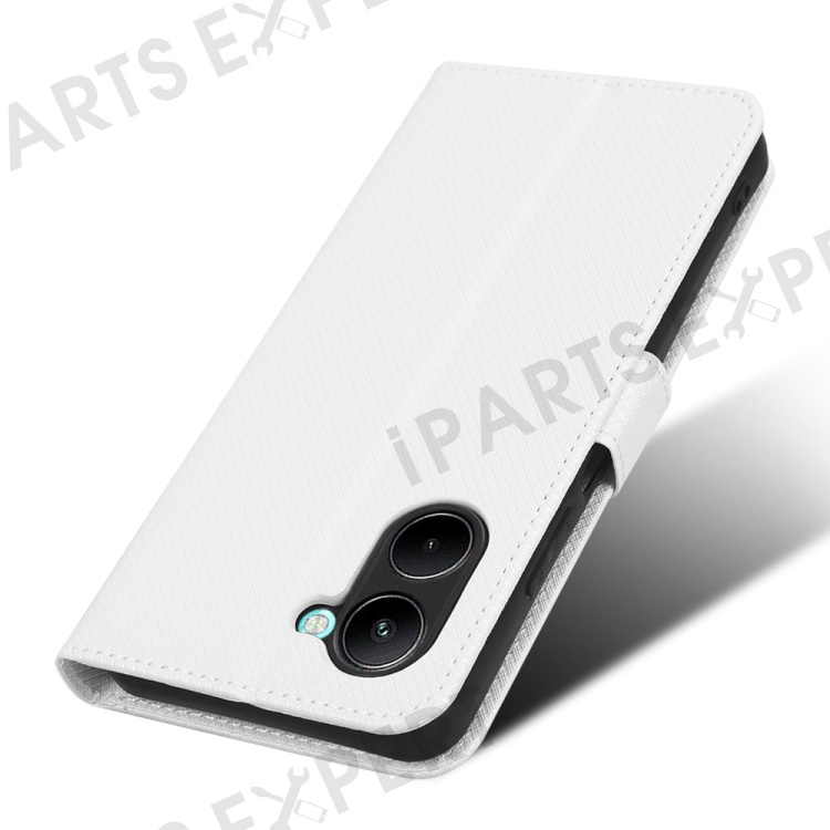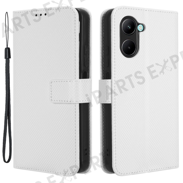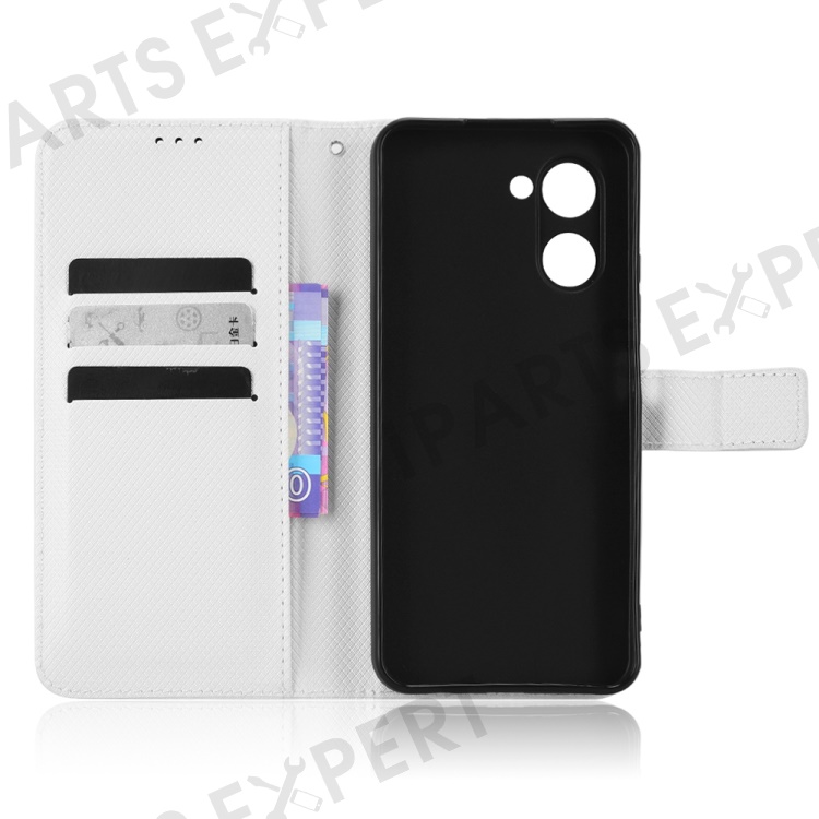 For Realme C33 4G Diamond Texture PU Leather Flip Phone Case Wallet Stand Design Folio Cover with Strap - White