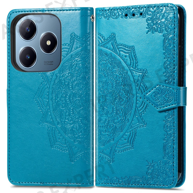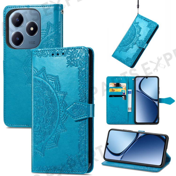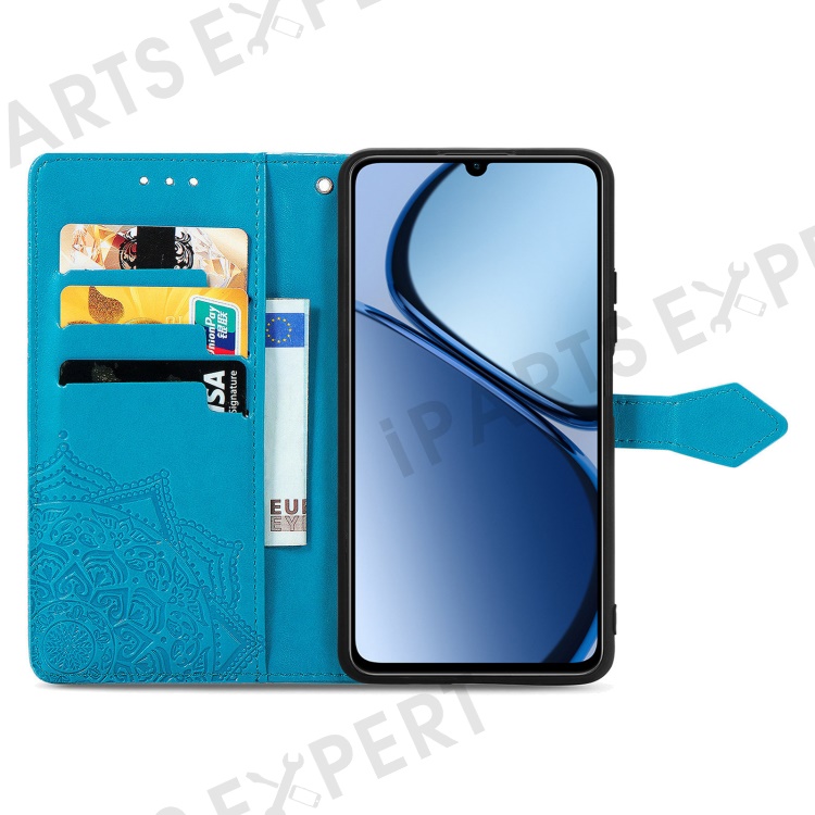 For Realme Note 60x 4G / C63 4G / C61 4G Case Mandala Embossed Design Leather Wallet Phone Cover - Blue