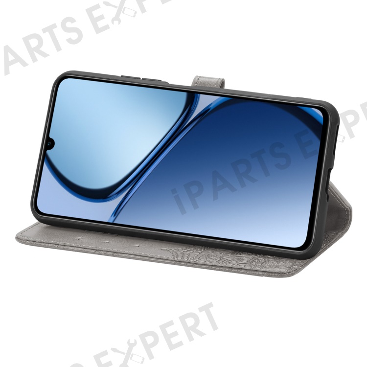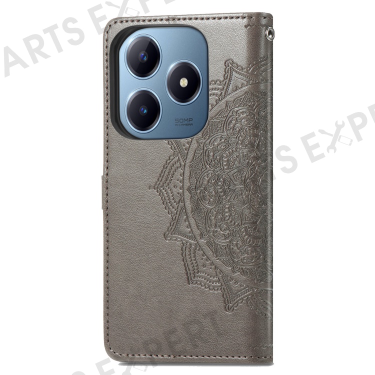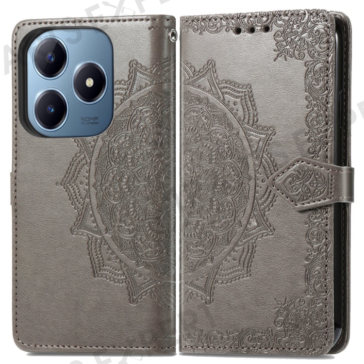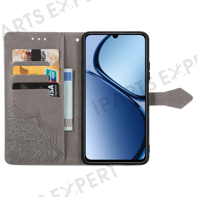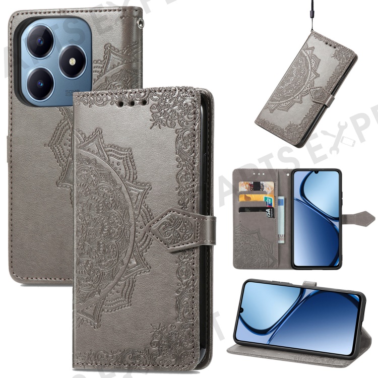 For Realme Note 60x 4G / C63 4G / C61 4G Case Mandala Embossed Design Leather Wallet Phone Cover - Grey
