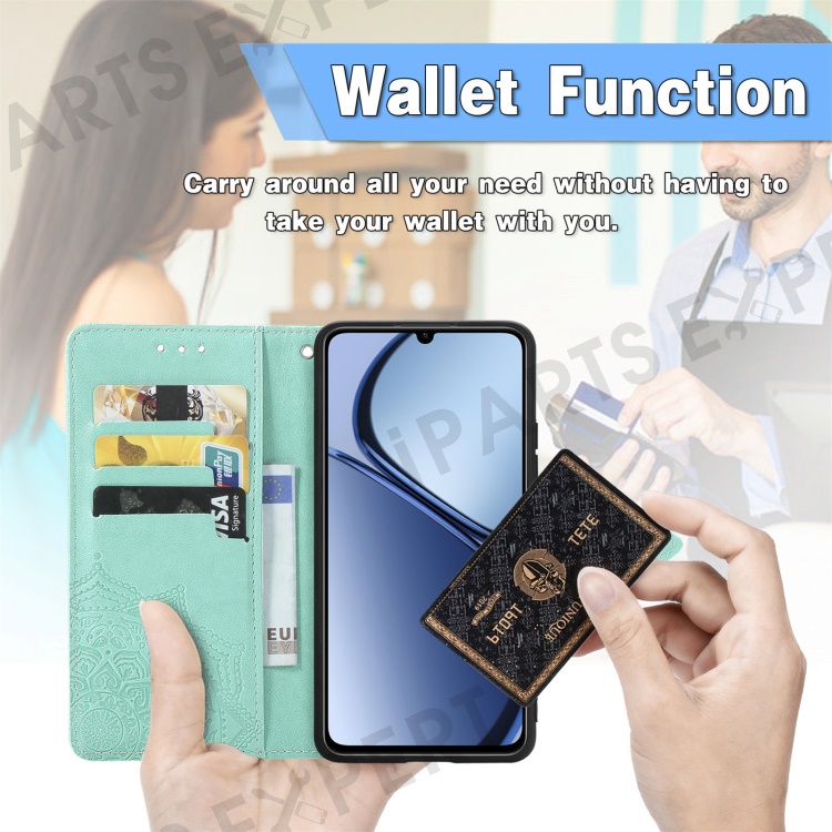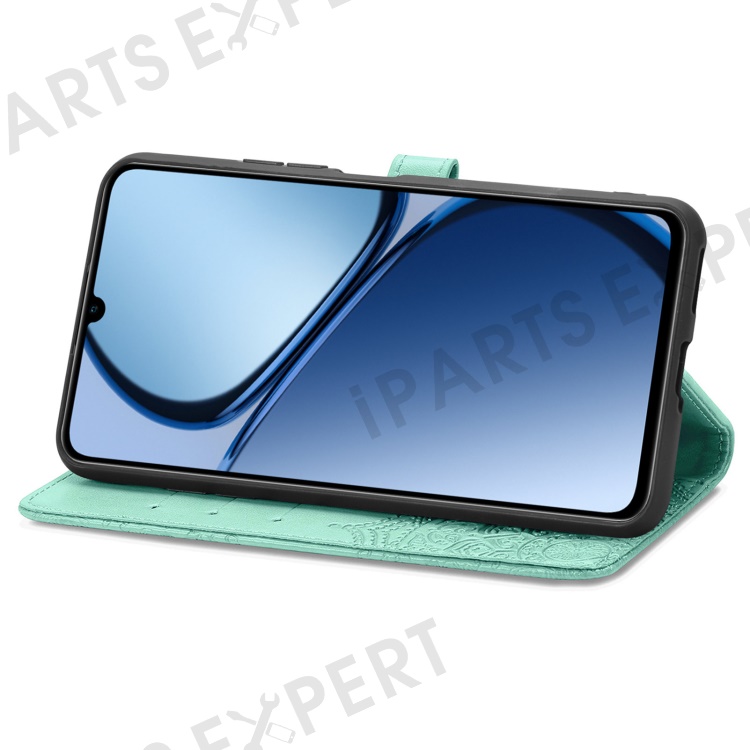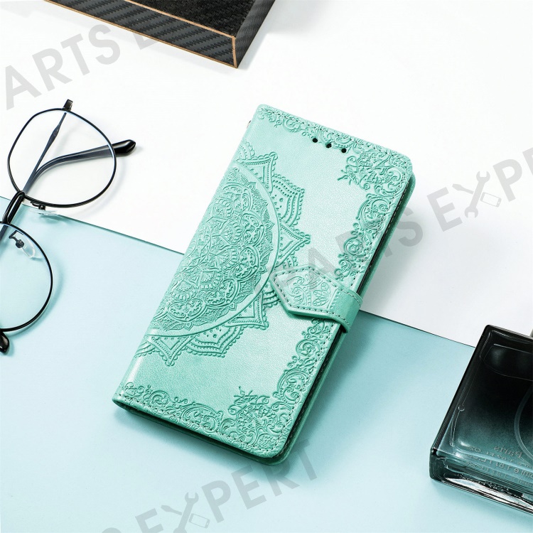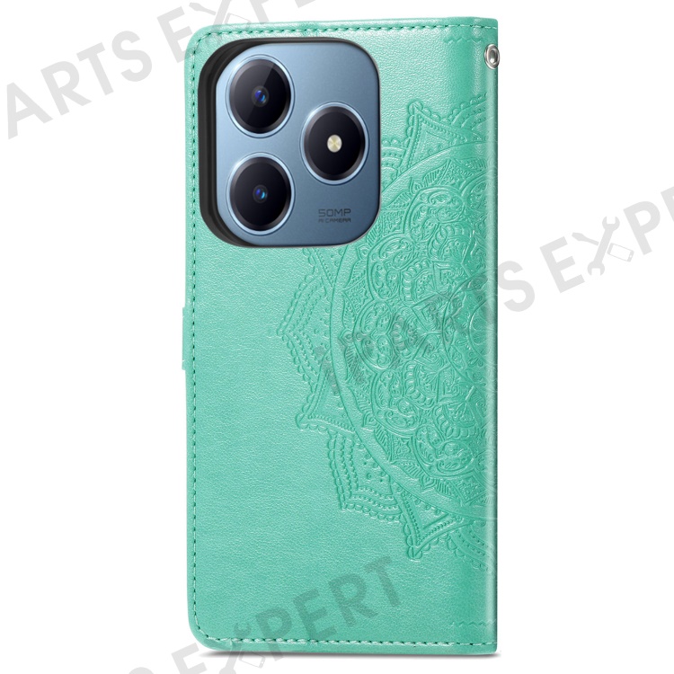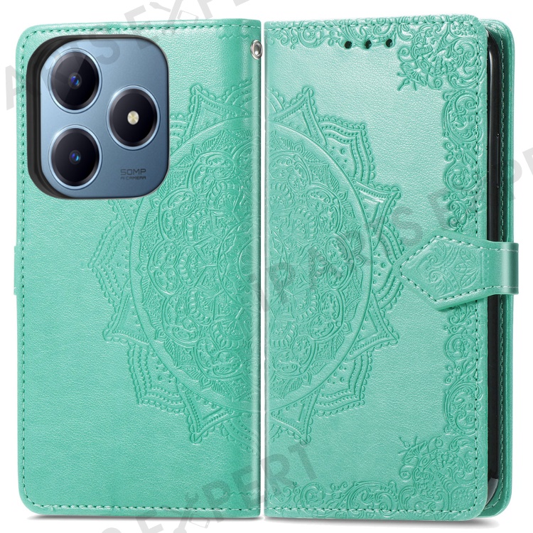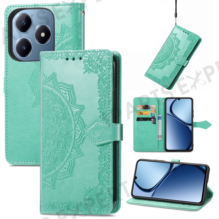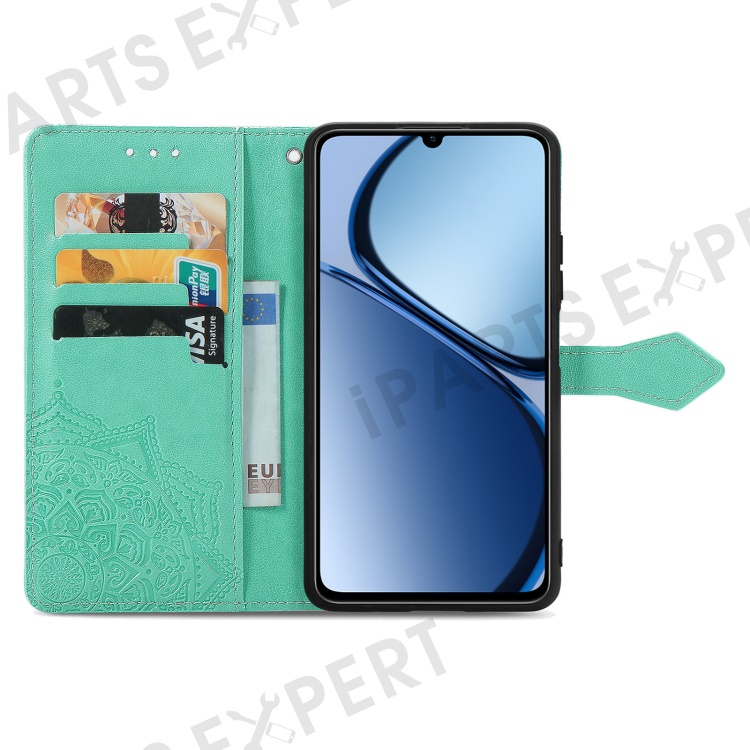 For Realme Note 60x 4G / C63 4G / C61 4G Case Mandala Embossed Design Leather Wallet Phone Cover - Mint Green