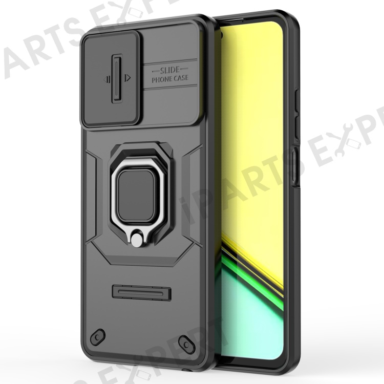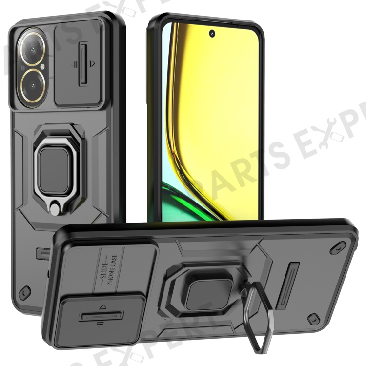 For Realme C67 4G Case PC+TPU Slide Lens Lid Phone Cover - Black
