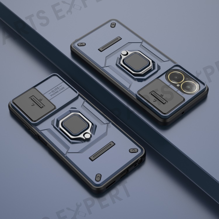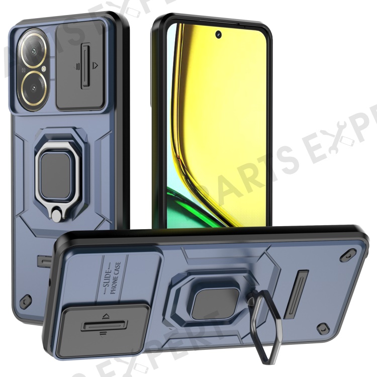 For Realme C67 4G Case PC+TPU Slide Lens Lid Phone Cover - Blue