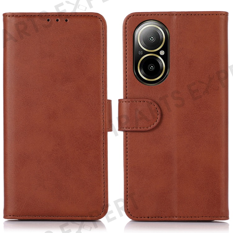 For Realme C67 4G Case PU Leather Card Slot Stand Shockproof TPU Interior Shell Phone Cover - Brown