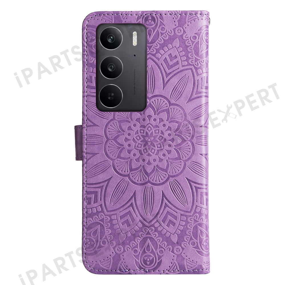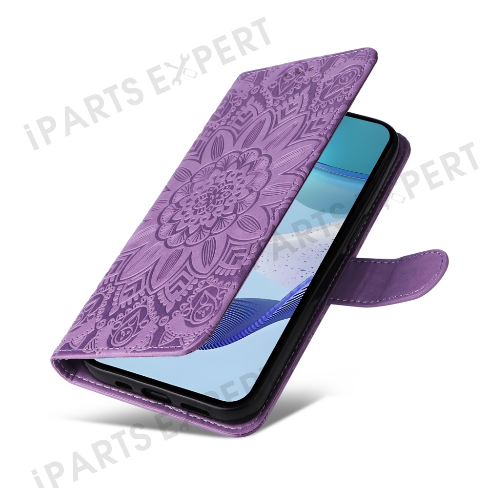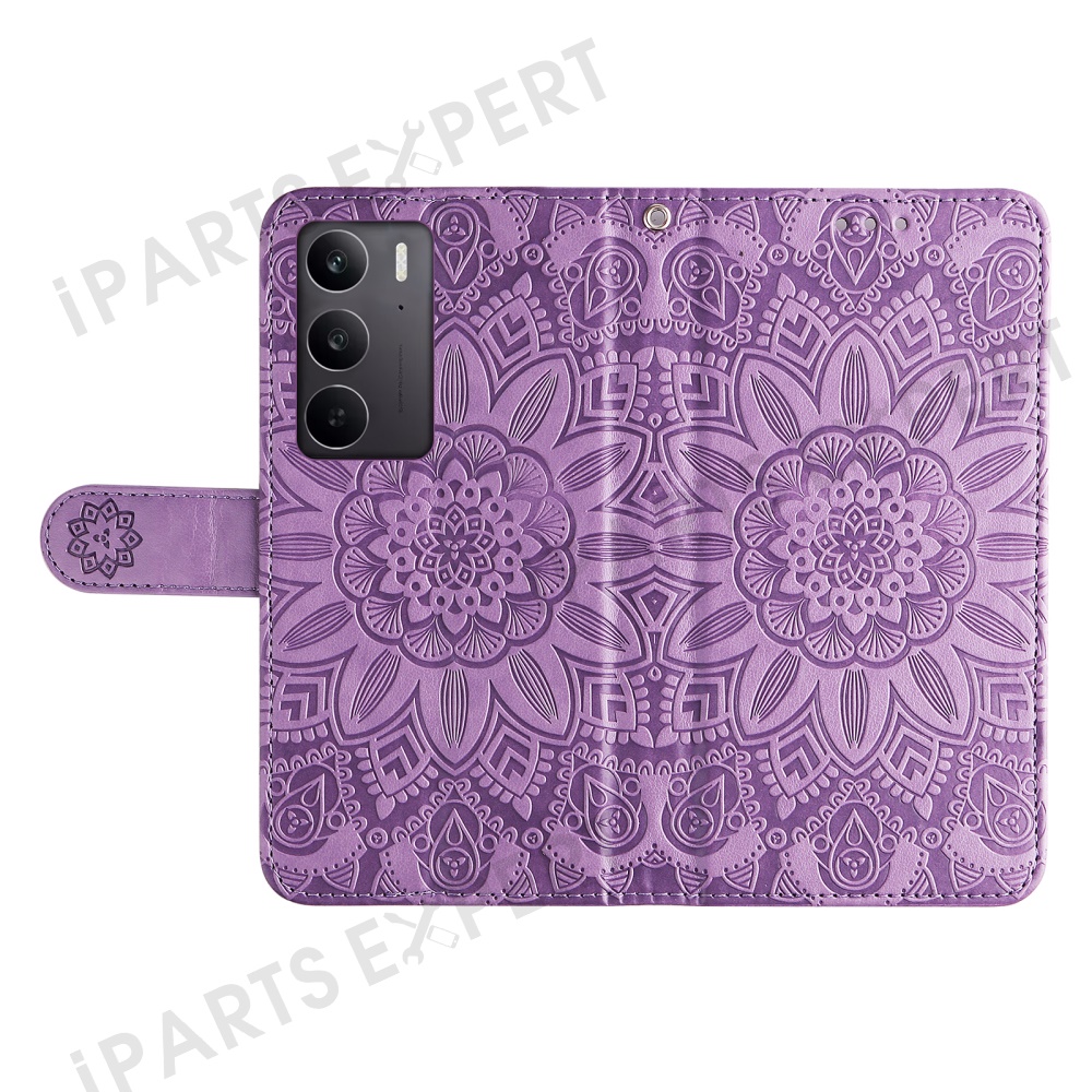For Oppo A5 5G / 4G / Realme C75 5G / C75 4G / C73 5G / C71 4G / 14x 5G Case Sunflower Imprint Leather Wallet Phone Cover - Purple