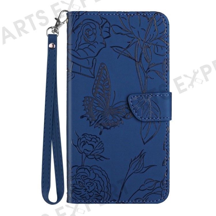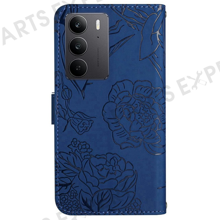 For Realme C75 4G Case Leather Phone Cover with Strap, Butterfly Flower Imprint - Blue