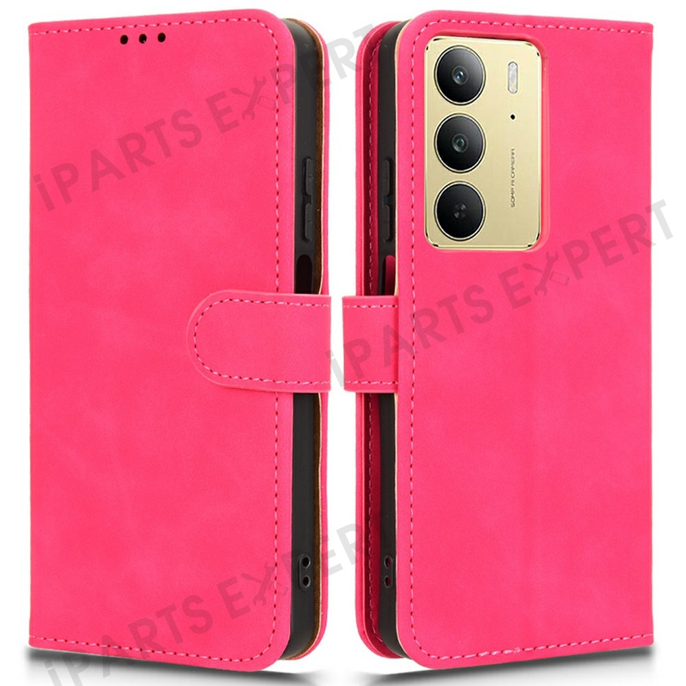 For Realme C75 4G Leather Case Skin Feel Anti Drop Wallet Flip Phone Cover - Rose