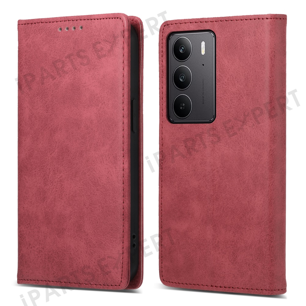 For Realme C75 4G / V60 Pro 5G Wallet Case RFID Blocking PU Leather Phone Cover - Red