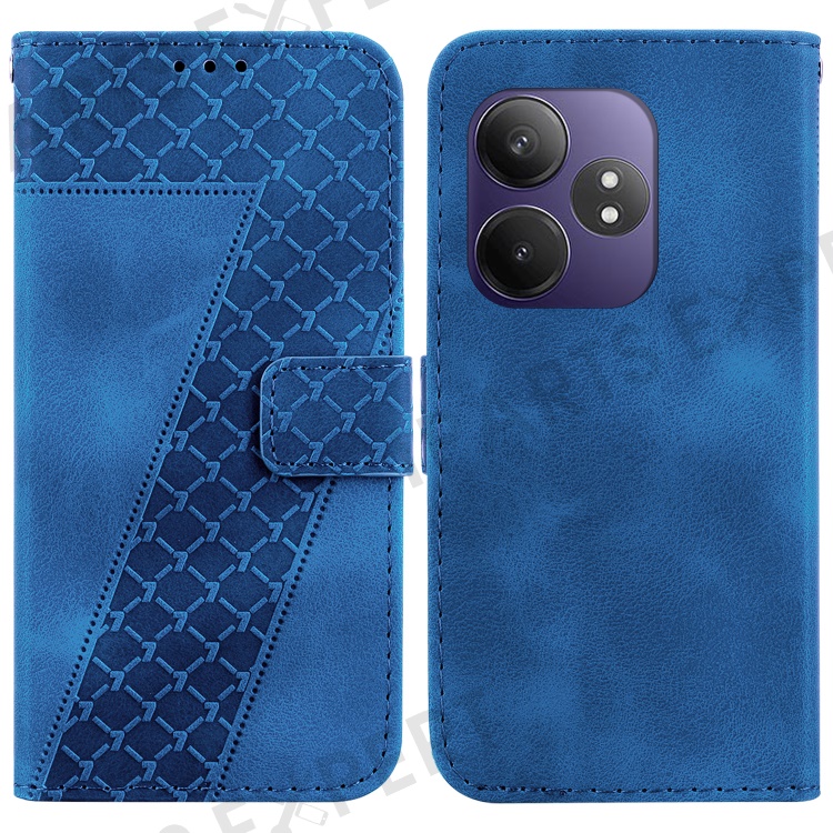For Realme GT Neo6 SE 5G / Neo6 5G / 6T 5G / 6 5G Stand Case 7-Shaped Pattern Imprint Leather Phone Cover - Blue