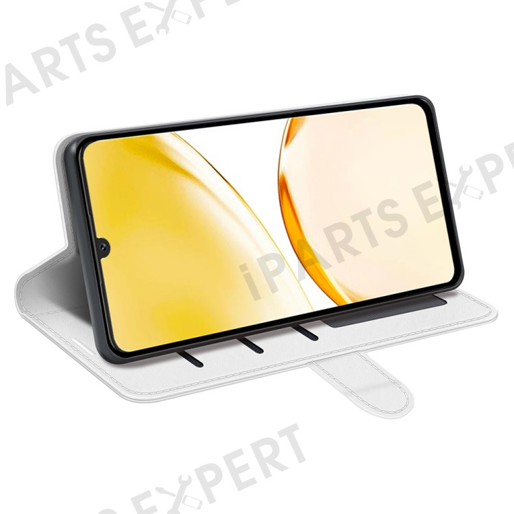 For Realme Narzo N53 4G Anti-collision Crazy Horse Texture Phone Wallet Case PU Leather Stand Cover - White
