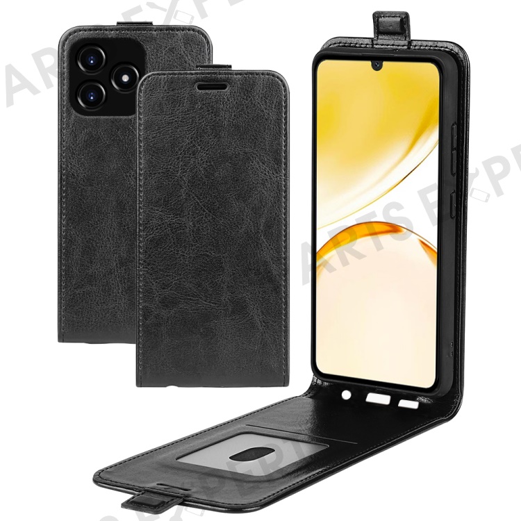For Realme Narzo N53 4G Vertical Flip PU Leather Phone Case with Card Slot Protective Phone Cover - Black