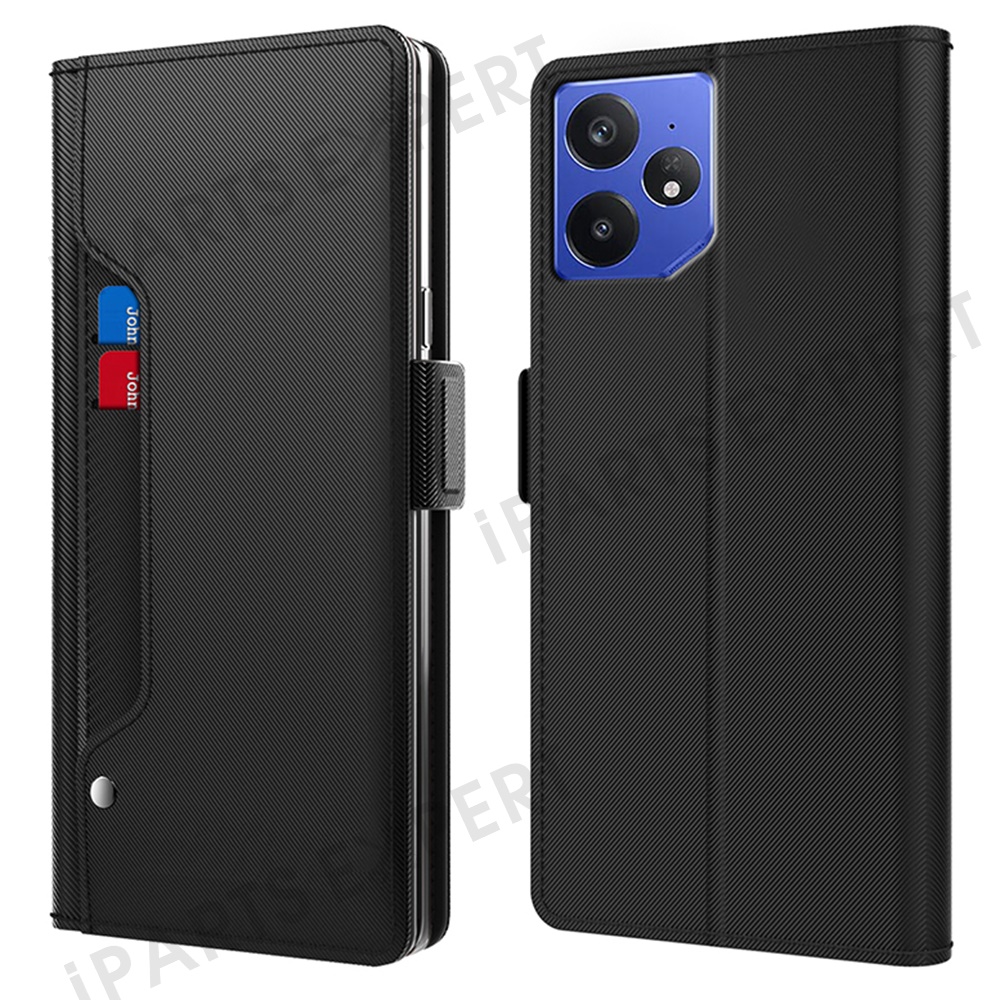 For Realme Neo7 5G Case Stand PU Leather Phone Cover Card Holder Mirror - Black