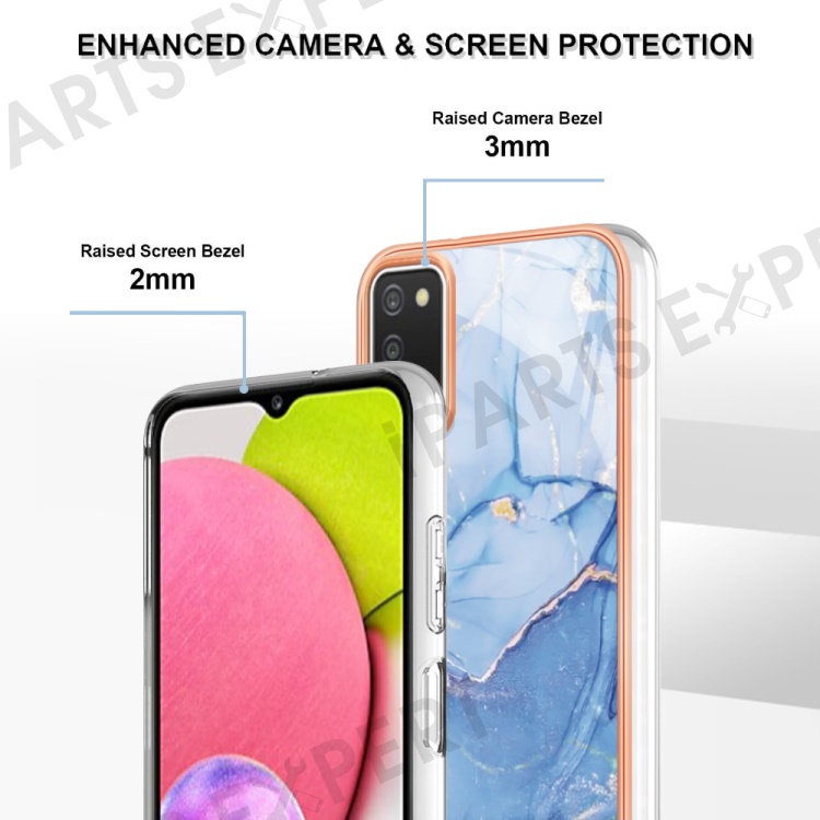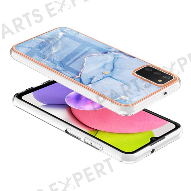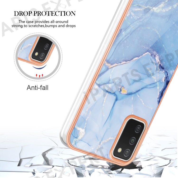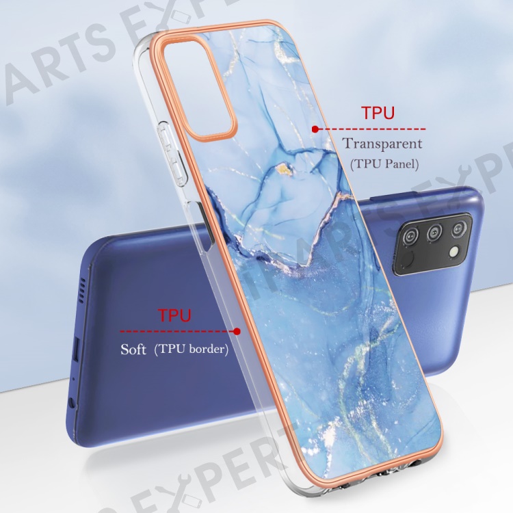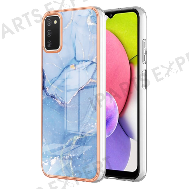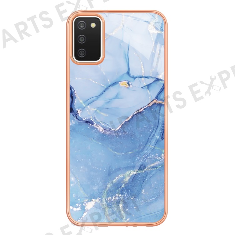 For Samsung Galaxy A03s (166.5 x 75.98 x 9.14mm) TPU Phone Case YB IMD Series-16 Style E 2.0mm Anti-Drop Electroplating Marble Pattern IMD Back Cover - Blue