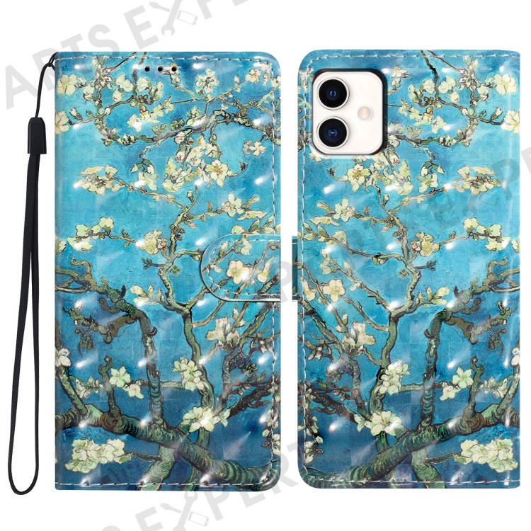 For Samsung Galaxy A04 4G (164.4 x 76.3 x 9.1 mm) Case 3D Pattern Leather Phone Cover - Apricot Blossom