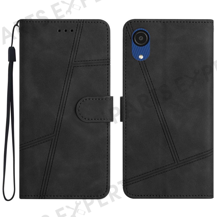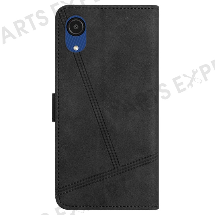For Samsung Galaxy A04 Core 4G Overall Coverage Phone Case, Skin-touch Feeling Lines Imprinted Vintage PU Leather Magnetic Flip Cover with Wallet Stand - Black