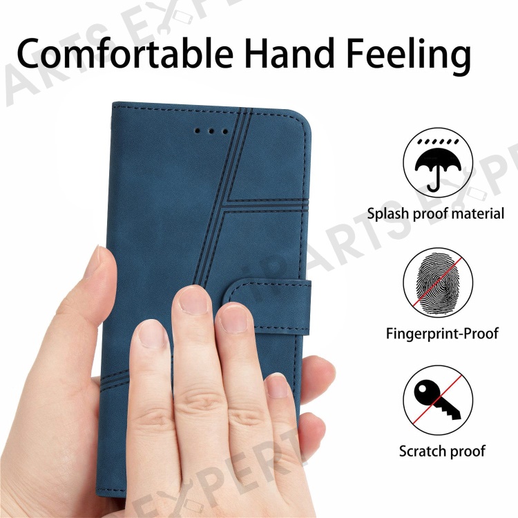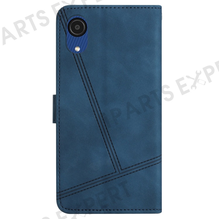 For Samsung Galaxy A04 Core 4G Overall Coverage Phone Case, Skin-touch Feeling Lines Imprinted Vintage PU Leather Magnetic Flip Cover with Wallet Stand - Blue