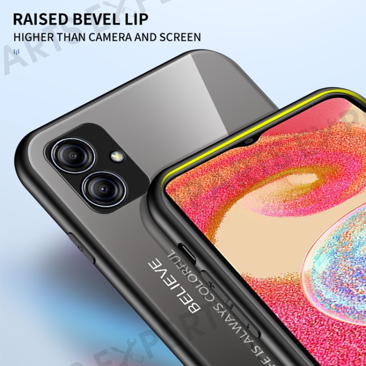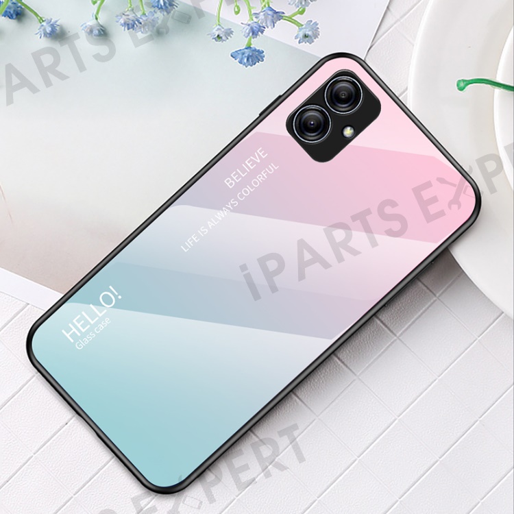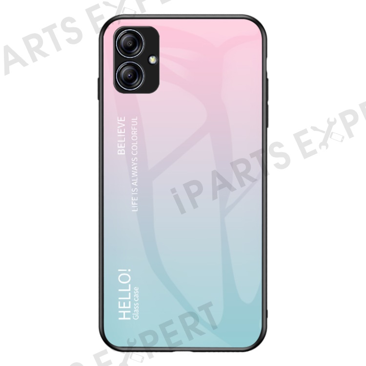 For Samsung Galaxy A04e 4G / F04 4G / M04 4G Gradient Color Tempered Glass Back Shell Hard PC Soft TPU Scratch-Resistant Hybrid Phone Case - Gradient Pink Blue