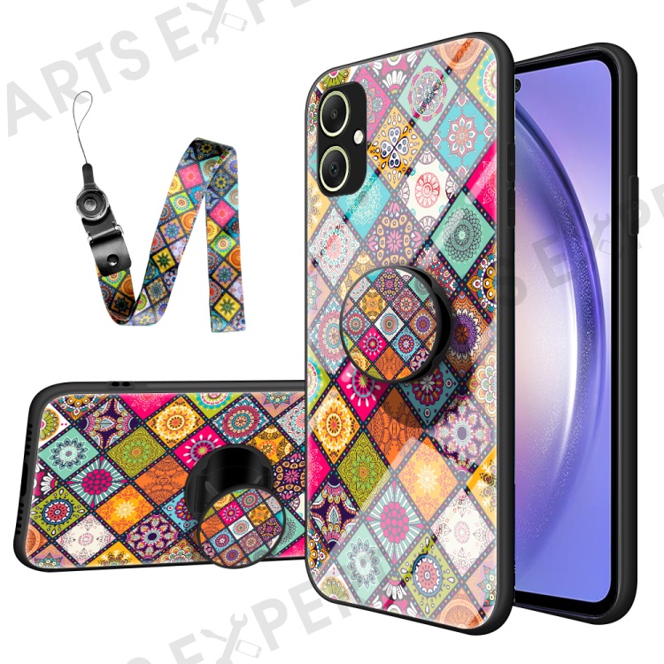 For Samsung Galaxy A05 4G Case Flower Pattern Kickstand Cover with Lanyard - Color Pattern