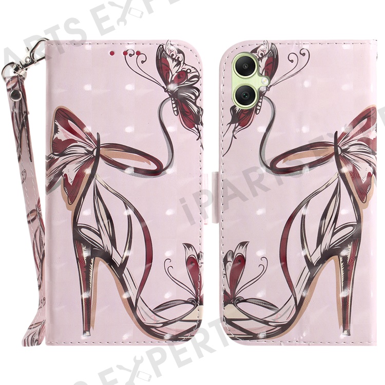 For Samsung Galaxy A05 4G Case Mobile Phone 3D Pattern Printed PU Leather Cover - Butterfly High Heels