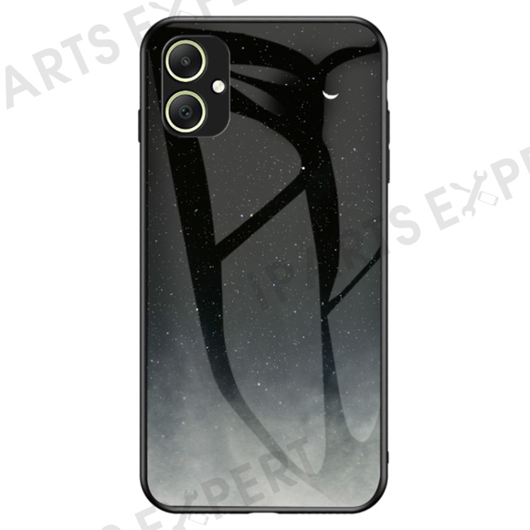 For Samsung Galaxy A05 4G Cover Tempered Glass+PC+TPU Starry Sky Pattern Phone Case - Starry Crescent Moon