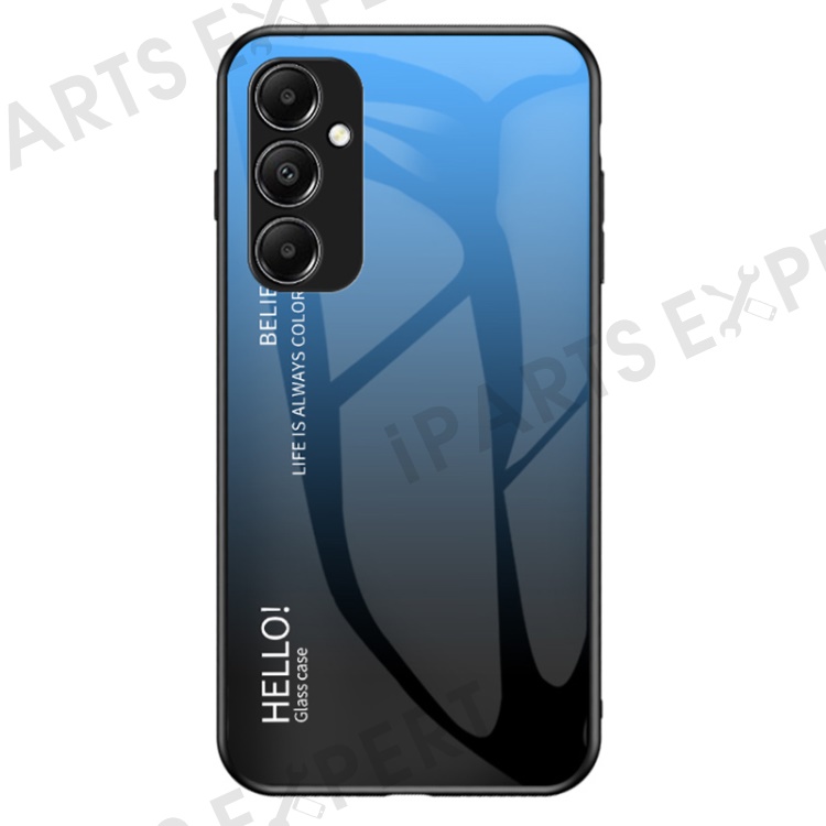 For Samsung Galaxy A05s 4G Case Tempered Glass+PC+TPU Gradient Anti-fall Phone Cover - Gradient Blue Black