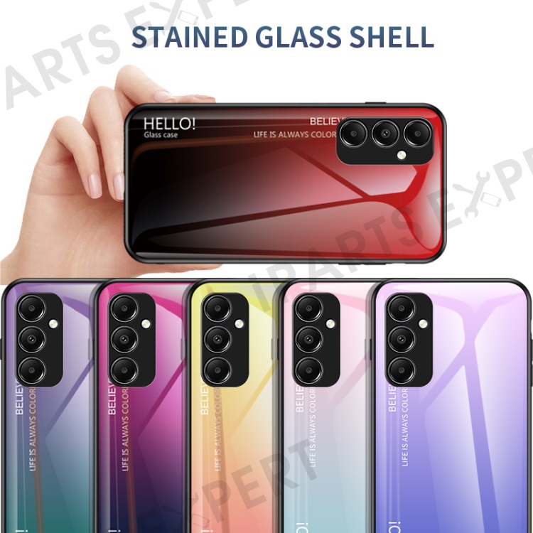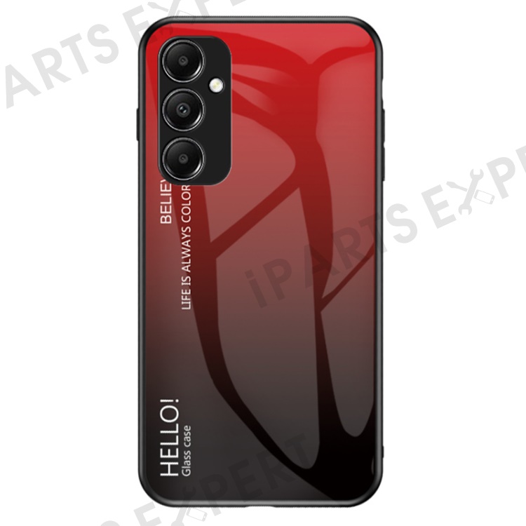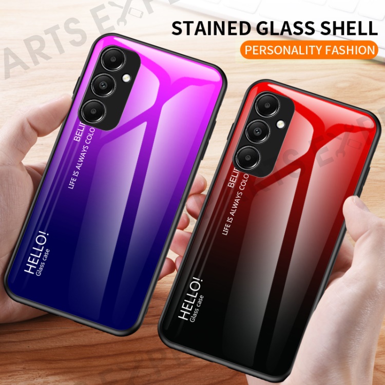 For Samsung Galaxy A05s 4G Case Tempered Glass+PC+TPU Gradient Anti-fall Phone Cover - Gradient Red Black