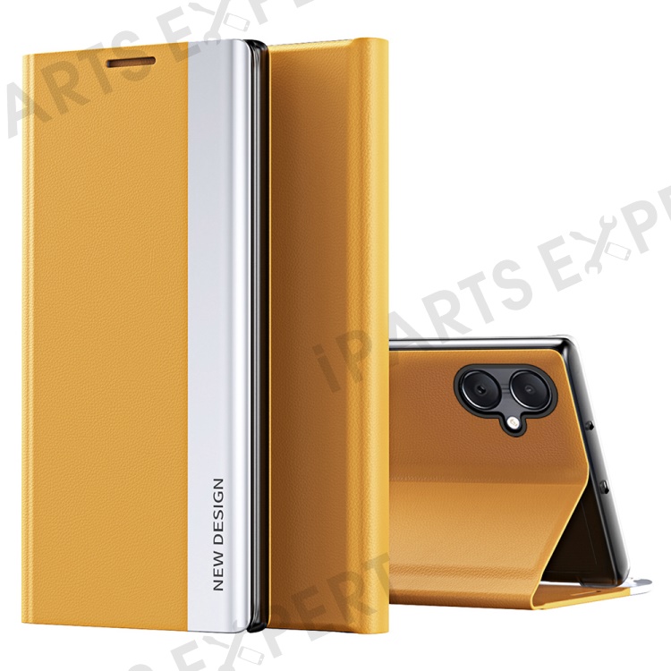 For Samsung Galaxy A06 4G Case Anti-Drop Leather Phone Cover with Stand - Yellow