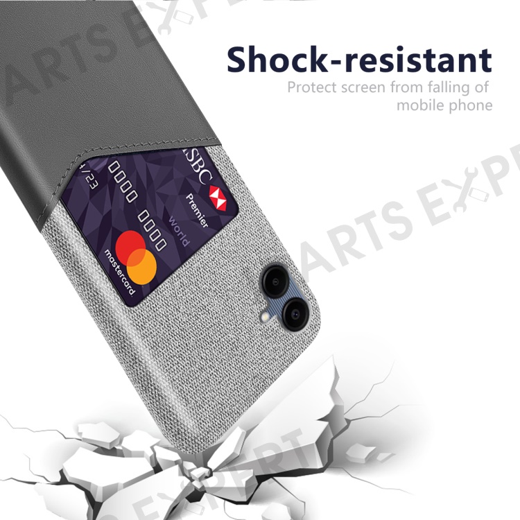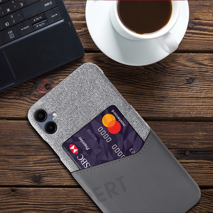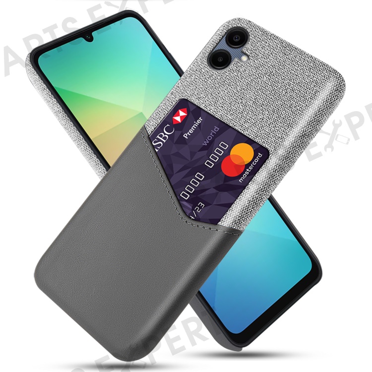 For Samsung Galaxy A06 4G Case Cloth Texture PU Leather Hard PC Card Slot Phone Cover - Grey
