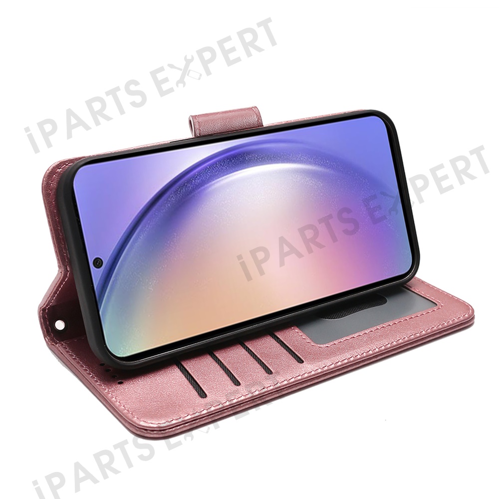 For Samsung Galaxy A06s Case Stand Card Holder Wallet Leather Phone Cover - Rose Gold